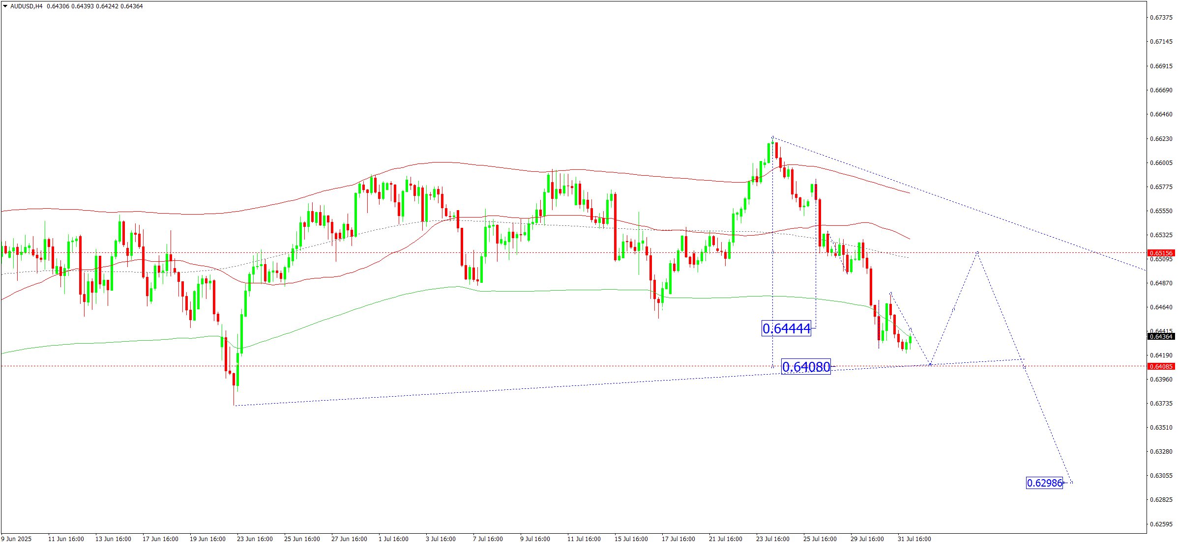 Техникалық тұрғыдан бұл сценарий 0.6515 бұрылу нүктесімен белгіленген Elliott толқын құрылымы мен төмендеу толқыны матрицасымен расталады. Бұл деңгей толқын құрылымында негізгі болып саналады. Қазіргі уақытта нарық Price Envelope-тің төменгі шекарасы – 0.6408 деңгейіне дейін төмендеу толқынын қалыптастыруда. Кейін орталық сызық – 0.6515 деңгейіне дейін көтерілу, одан соң 0.6400 деңгейіне дейін қайтадан төмендеу мүмкін.