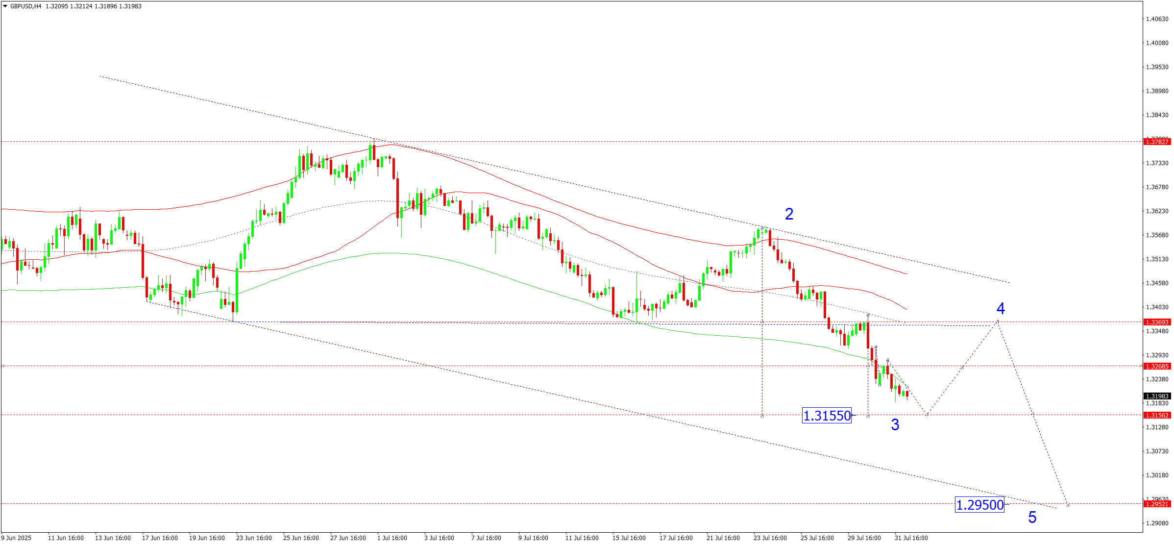 Техникалық тұрғыдан бұл сценарий 1.3370 бұрылу нүктесімен белгіленген Elliott толқын құрылымы мен төмендеу толқыны матрицасымен расталады. Бұл деңгей толқын құрылымында шешуші болып қала береді. Қазіргі уақытта нарық Price Envelope-тің төменгі шекарасы – 1.3155 деңгейіне дейін төмендеу толқынын құруда. Кейін 1.3370 орталық сызығына дейін түзету орын алуы ықтимал.