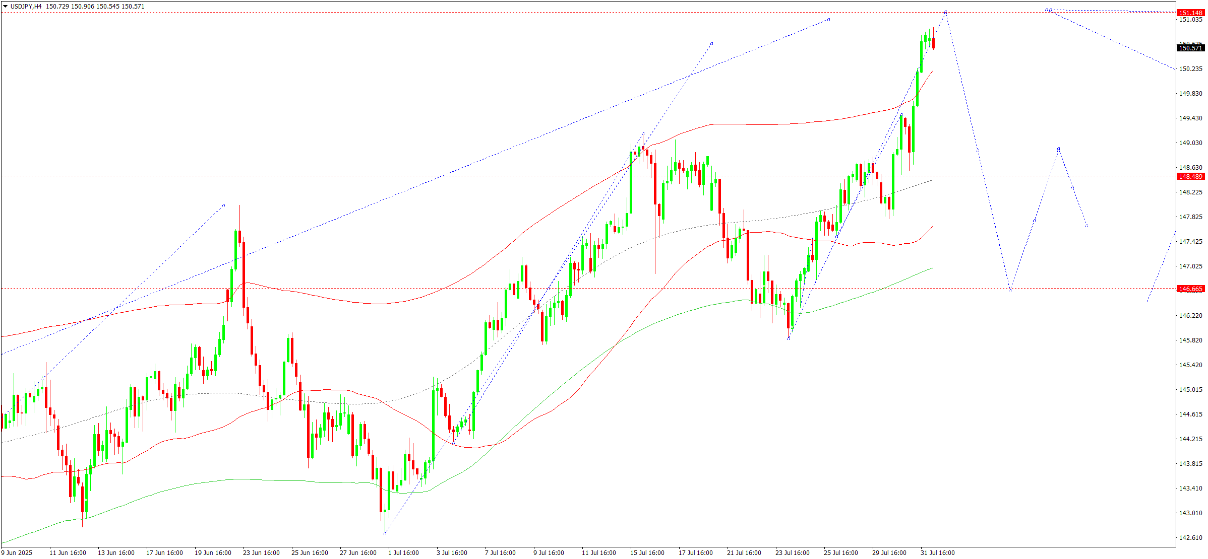 Техникалық тұрғыдан бұл сценарий 148.62 айналу орталығы ретінде белгіленген Elliott толқын құрылымы мен өсу толқыны матрицасымен расталады. Бұл деңгей осы толқындағы негізгі деңгей ретінде қарастырылады. Нарық Price Envelope-тің жоғарғы шекарасы – 151.45 деңгейіне дейін көтерілу толқынын аяқтады. Кейін 148.62 орталық сызығына дейін төмендеу ықтимал, содан соң 153.40 деңгейіне дейін қайта өсу болжанады.