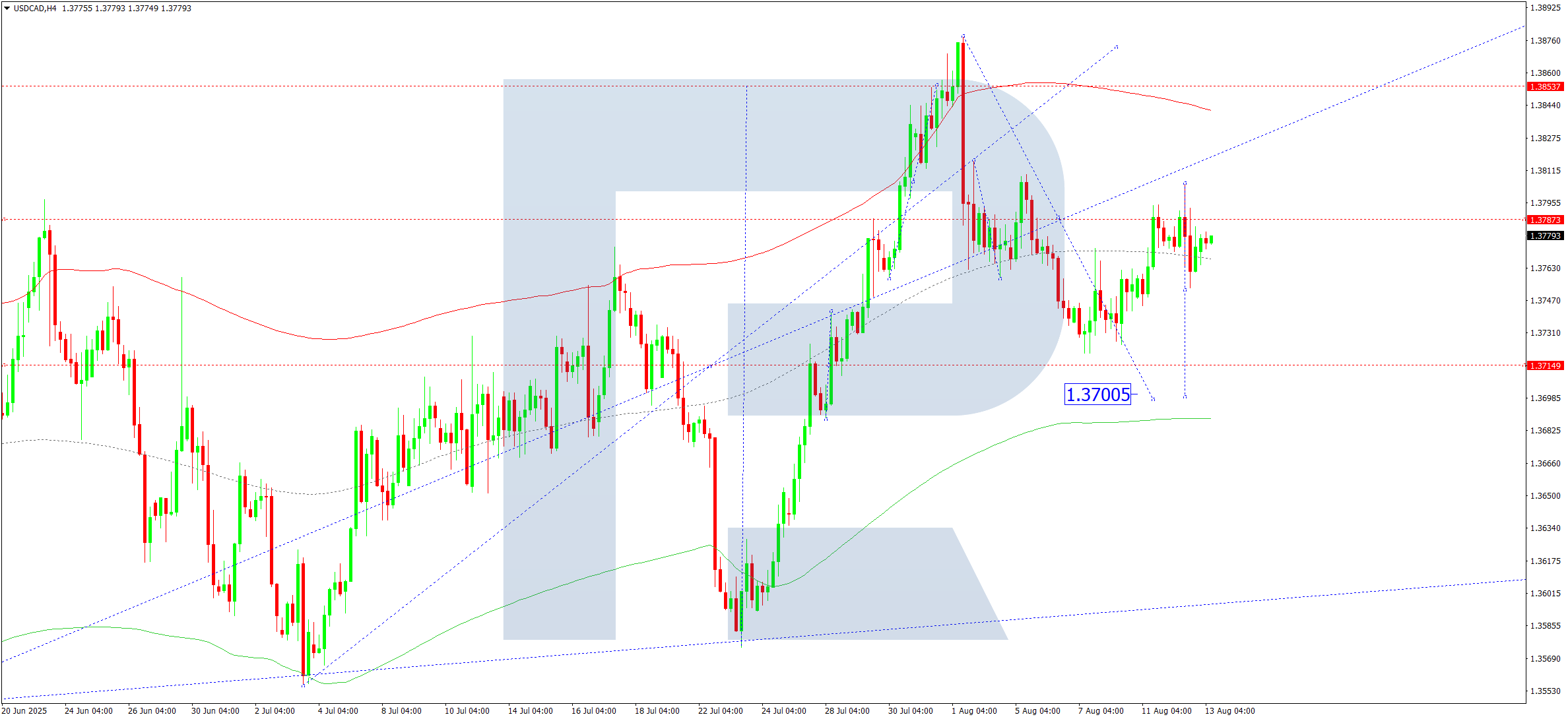 Бүгінгі USDCAD болжамы бойынша техникалық индикаторлар 1.3700 деңгейіне дейін төмендеуді болжайды.