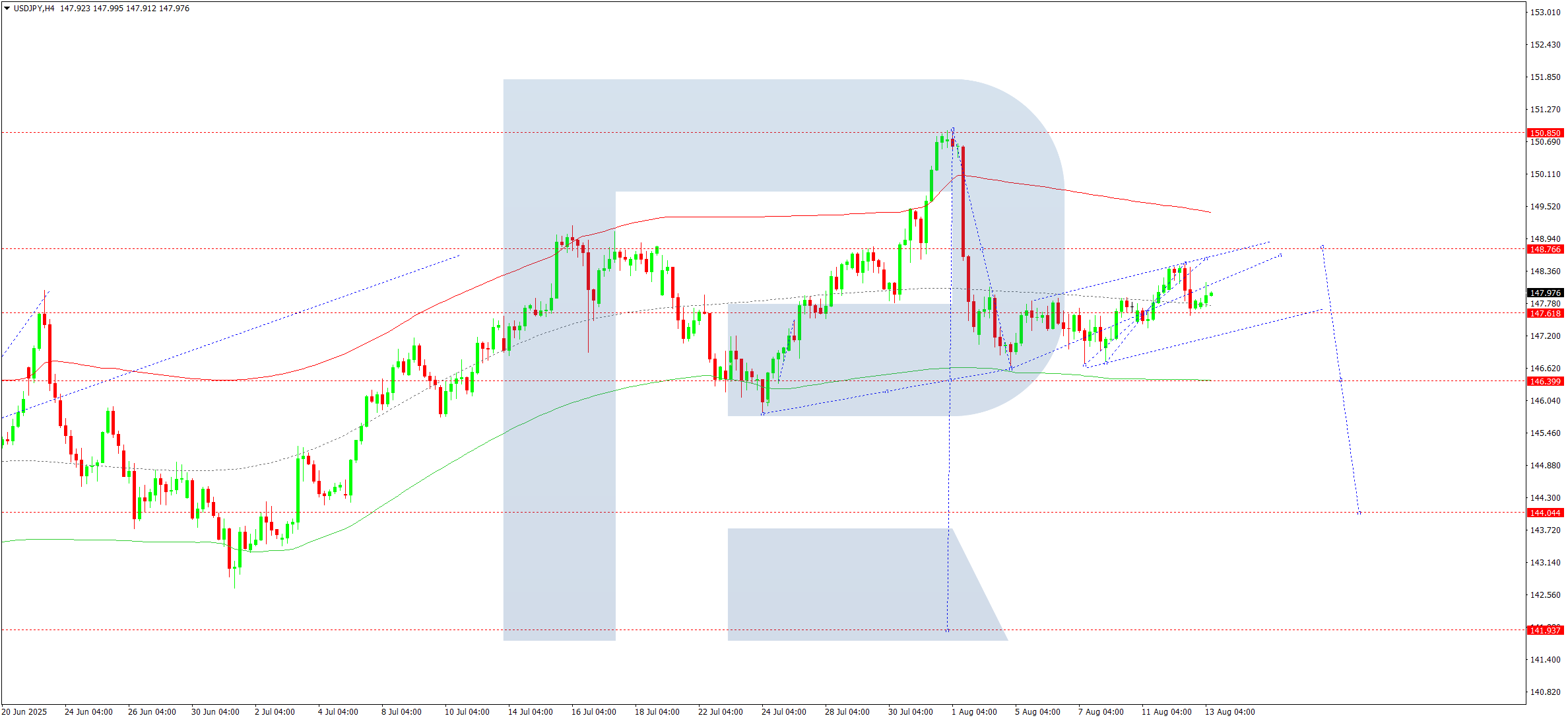 Бүгінгі USDJPY болжамы бойынша техникалық индикаторлар 148.77 деңгейіне дейін өсу толқынының жалғасу ықтималдығын көрсетеді.