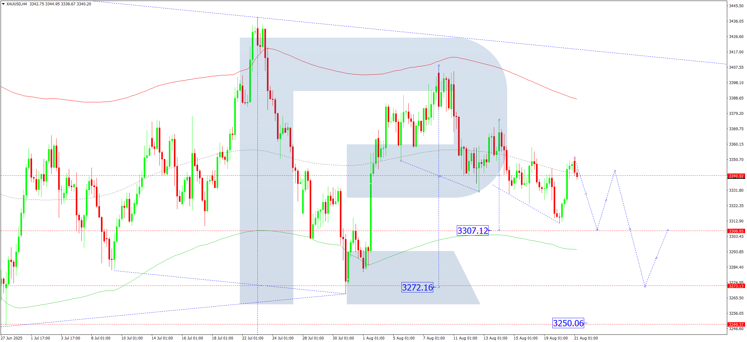 XAUUSD құнды металдың H4 графигінде нарық 3,340 деңгейінің айналасында консолидациялық ауқымды қалыптастыруды жалғастыруда. Бүгін, 2025 жылғы 21 тамызда, баға 3,307 деңгейіне дейін төмендеп, кейін 3,340 деңгейіне дейін (төменнен тексеру) түзетіліп, әрі қарай 3,272 деңгейіне дейін төмендеуі мүмкін.