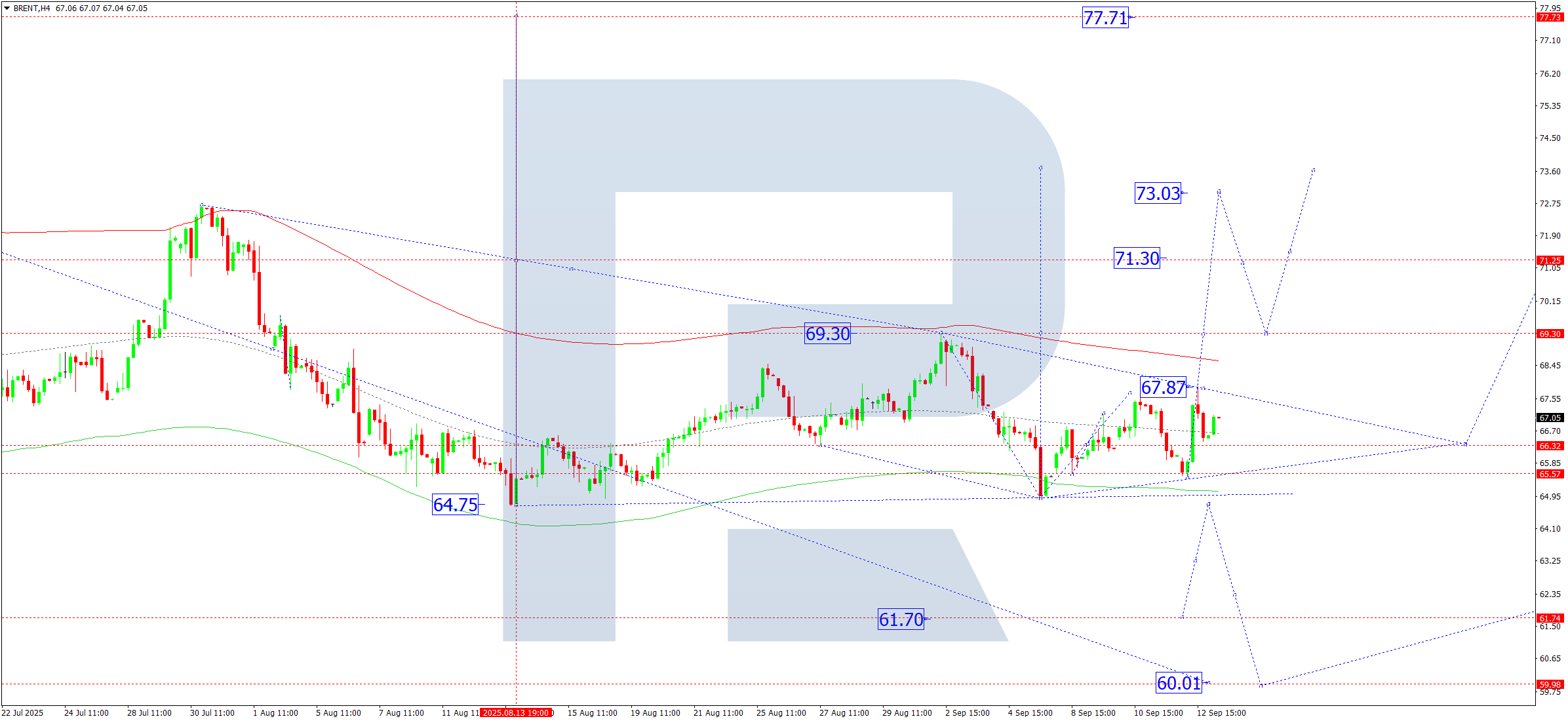 Техникалық тұрғыдан алғанда, Elliott толқын құрылымы және 67.00 тірек нүктесіндегі өсу толқыны матрицасы бұл сценарийді Brent үшін растайды. Қазіргі уақытта нарық Price Envelope жоғарғы шекарасына — 69.30 деңгейіне дейін өсу толқынын дамытуды жалғастыруда. Кейінірек орталық сызық — 67.00 деңгейіне дейін түзету болуы мүмкін.