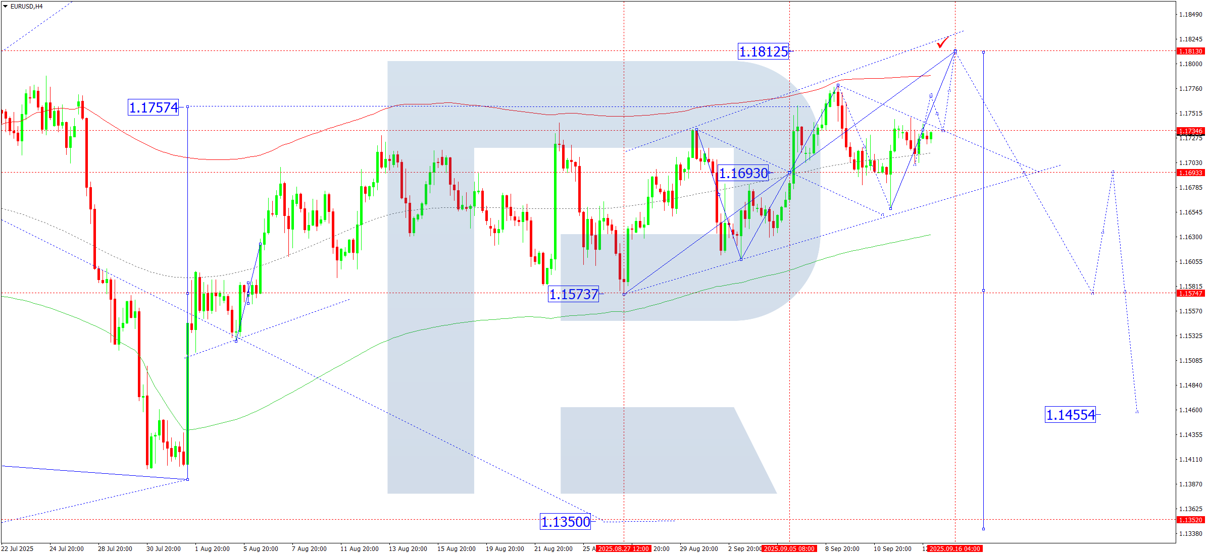 Міне, 2025 жылғы 15 қыркүйек күніне арналған EURUSD, USDJPY, GBPUSD, AUDUSD, USDCAD, XAUUSD және Brent бойынша егжей-тегжейлі күнделікті техникалық талдау және болжам.