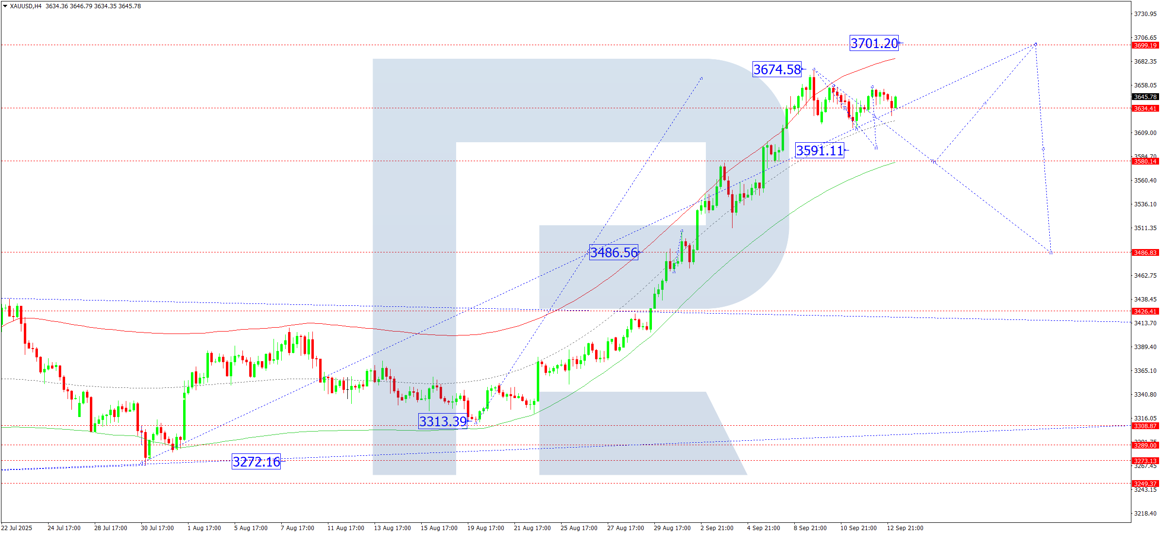 XAUUSD H4 графигінде нарық 3,486 деңгейінде консолидация ауқымын қалыптастырып, жоғарыға қарай бұзылып, 3,675 деңгейіне дейін жергілікті өсу толқынын аяқтады. Бүгін, 15 қыркүйек 2025 жылы, 3,636 маңында консолидациялық ауқым қалыптасуда. 3,590 деңгейіне дейін төмендеу, әрі қарай 3,486 деңгейіне дейін түзету болуы мүмкін. Кейінірек 3,700 деңгейіне дейін тағы бір өсу құрылымы дамуы ықтимал.