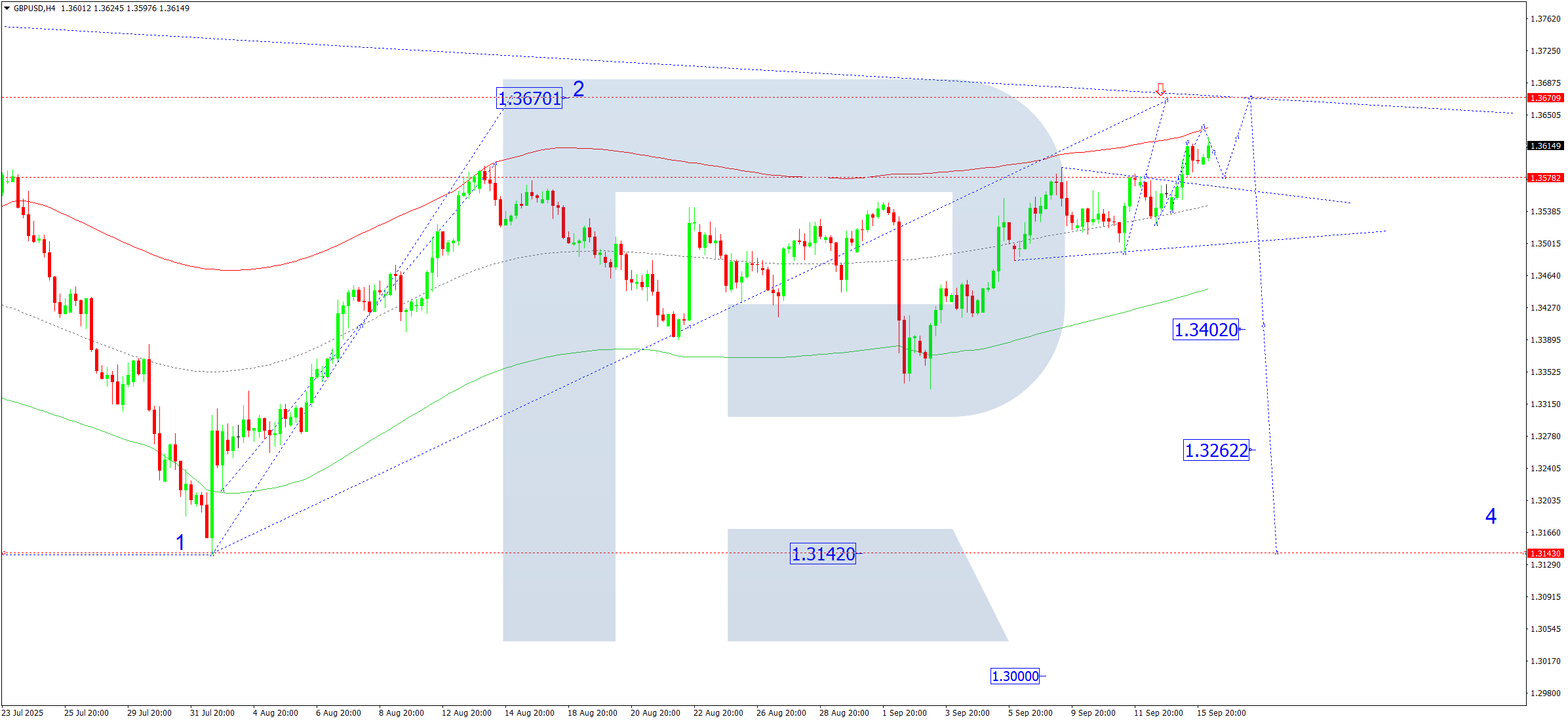 Техникалық тұрғыдан алғанда, Elliott толқын құрылымы мен 1.3400 тірек нүктесіндегі өсу толқыны матрицасы бұл сценарийді растайды. Қазіргі уақытта нарық Price Envelope жоғарғы шекарасына — 1.3670 деңгейіне дейін көтерілу толқынын қалыптастыруда.