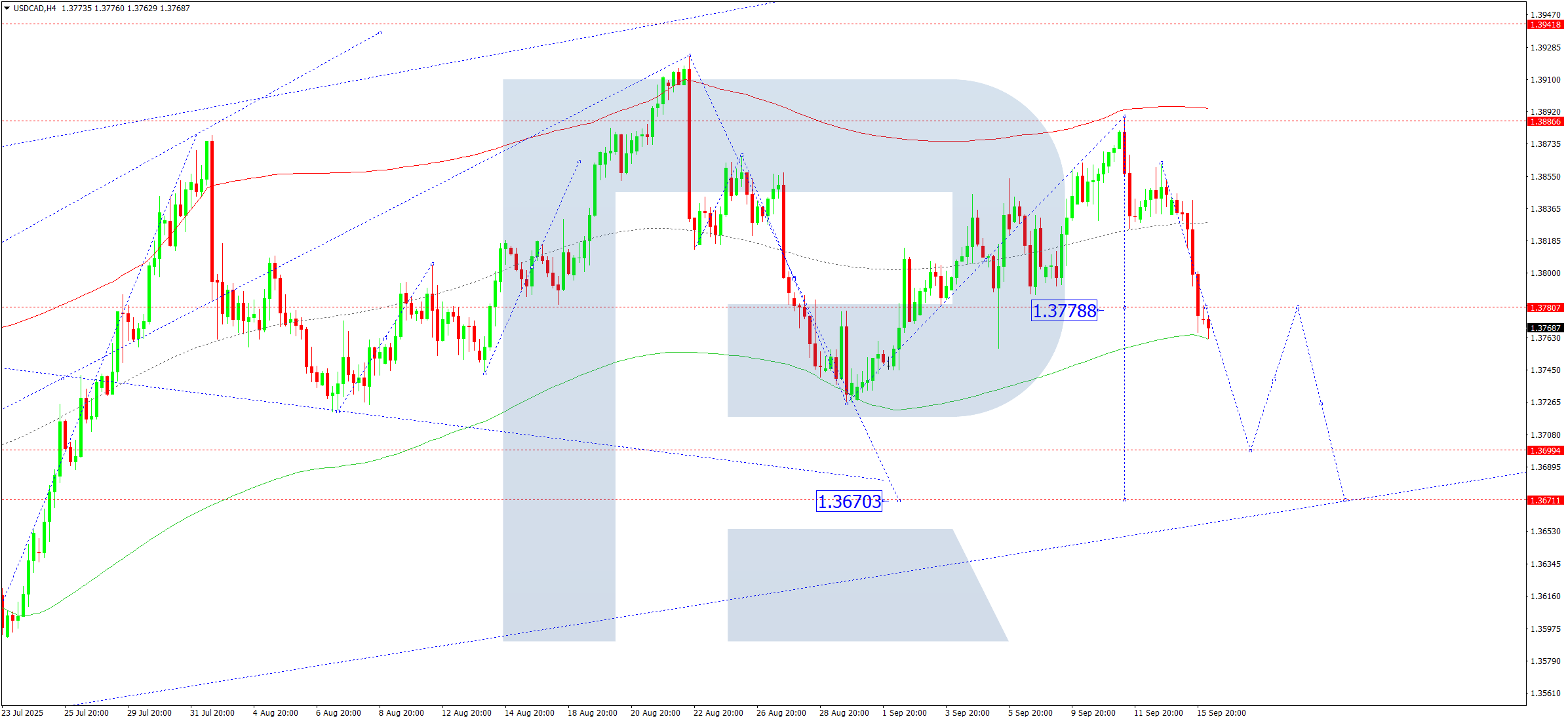 Бүгінгі USDCAD болжамына арналған техникалық индикаторлар 1.3700 деңгейіне дейін төмендеуді көрсетеді.