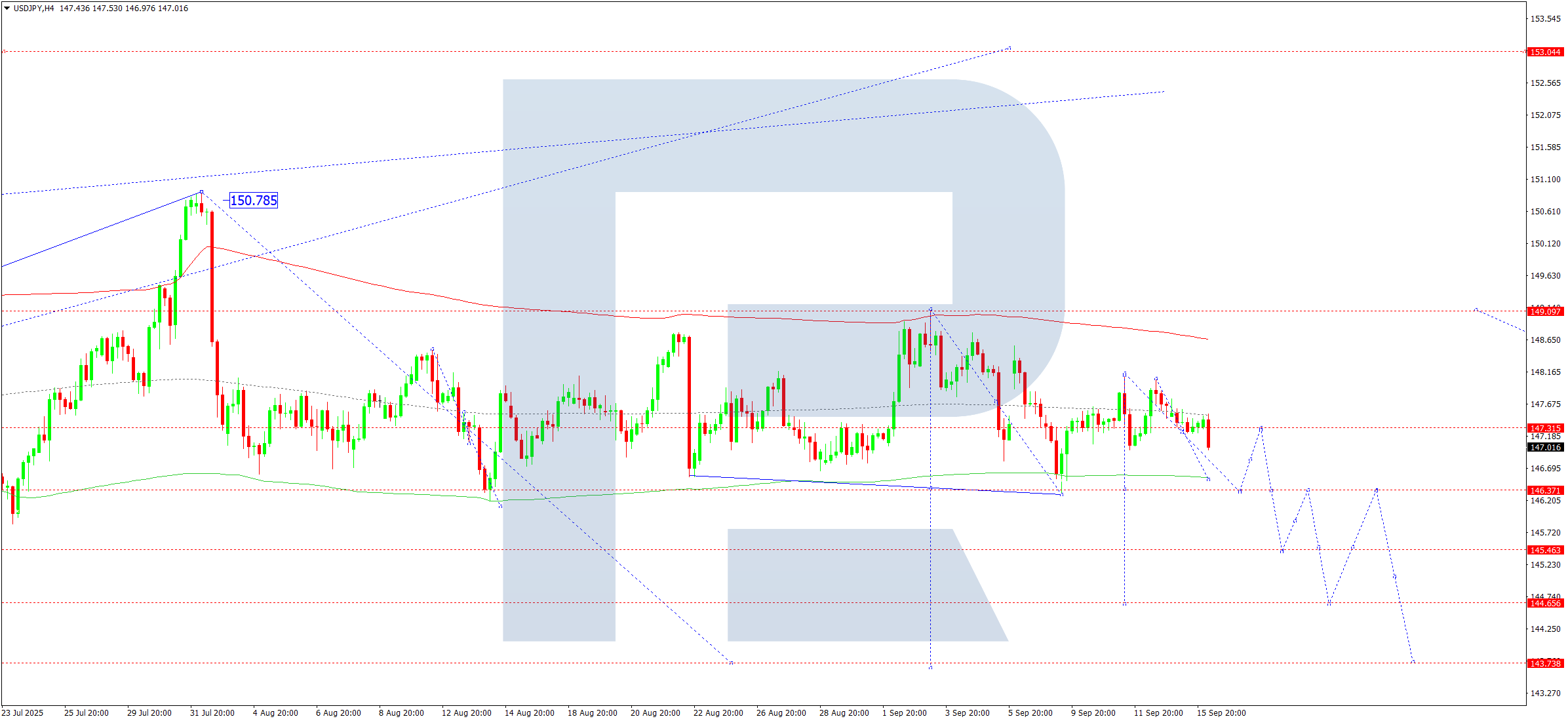 Бүгінгі USDJPY болжамына арналған техникалық индикаторлар 146.30 деңгейіне дейін төмендеуді көрсетеді.