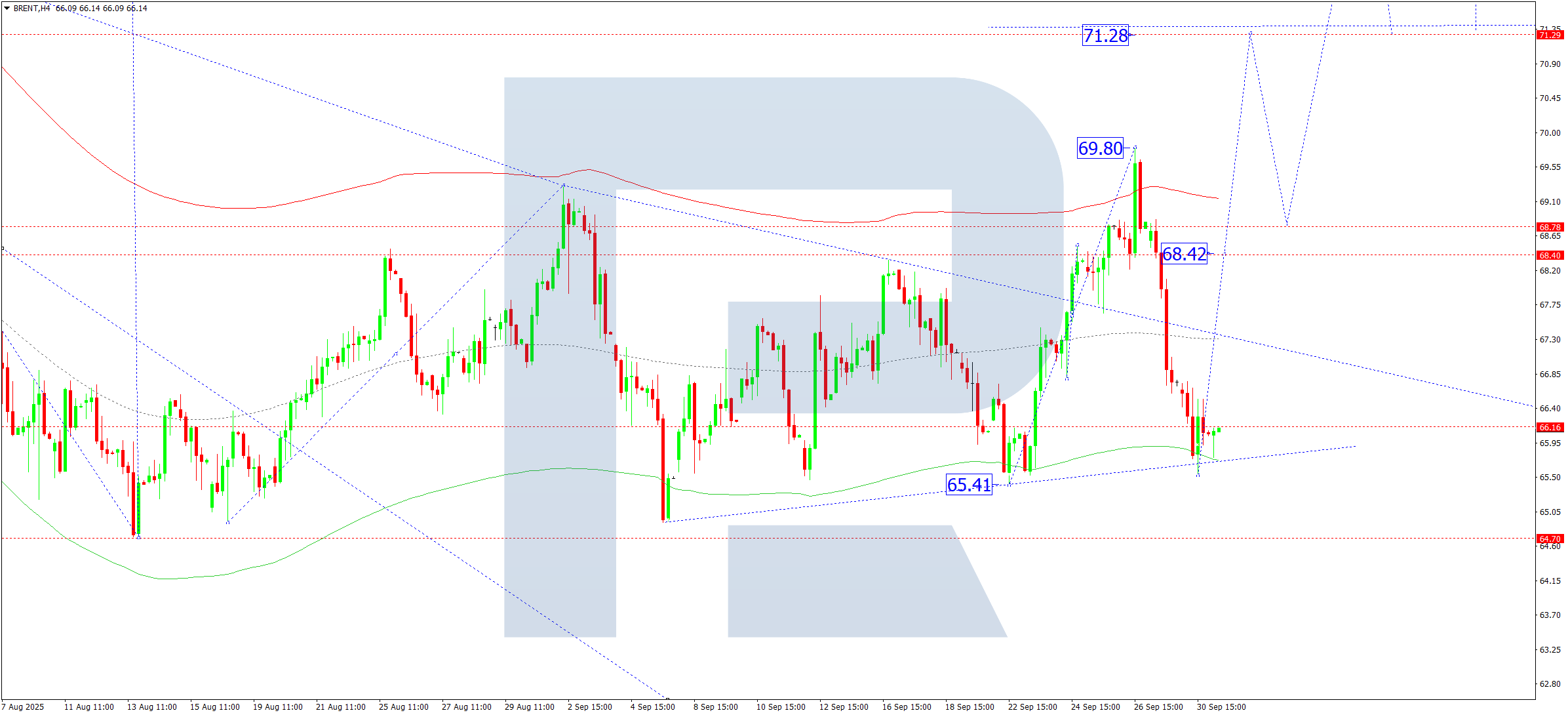 Бүгінгі Brent болжамына арналған техникалық индикаторлар 68.40 және 71.28 деңгейлеріне дейін өсуді ескеру қажеттігін көрсетеді.