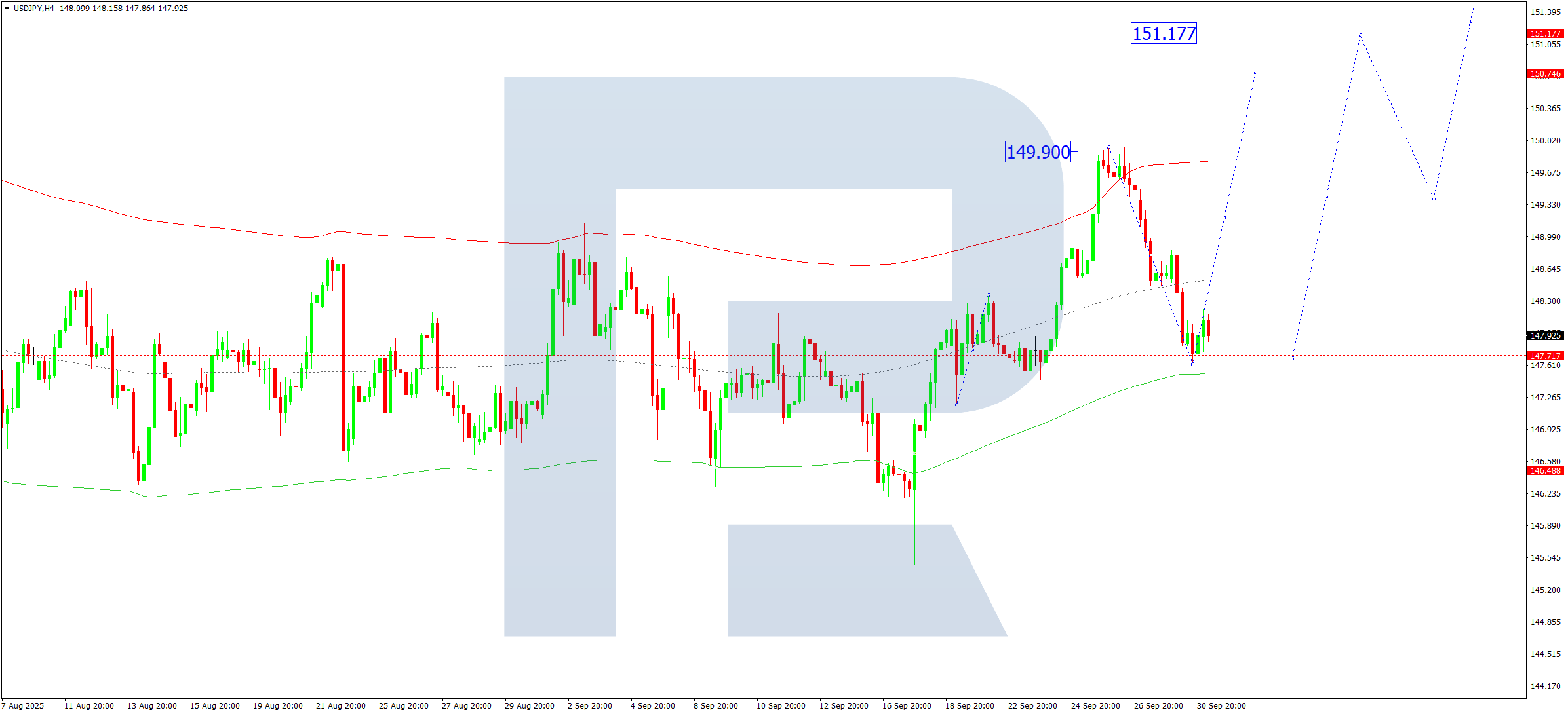 Бүгінгі USDJPY болжамына арналған техникалық индикаторлар 151.15 деңгейіне дейін өсу толқынының басталуын ескеру қажеттігін көрсетеді.