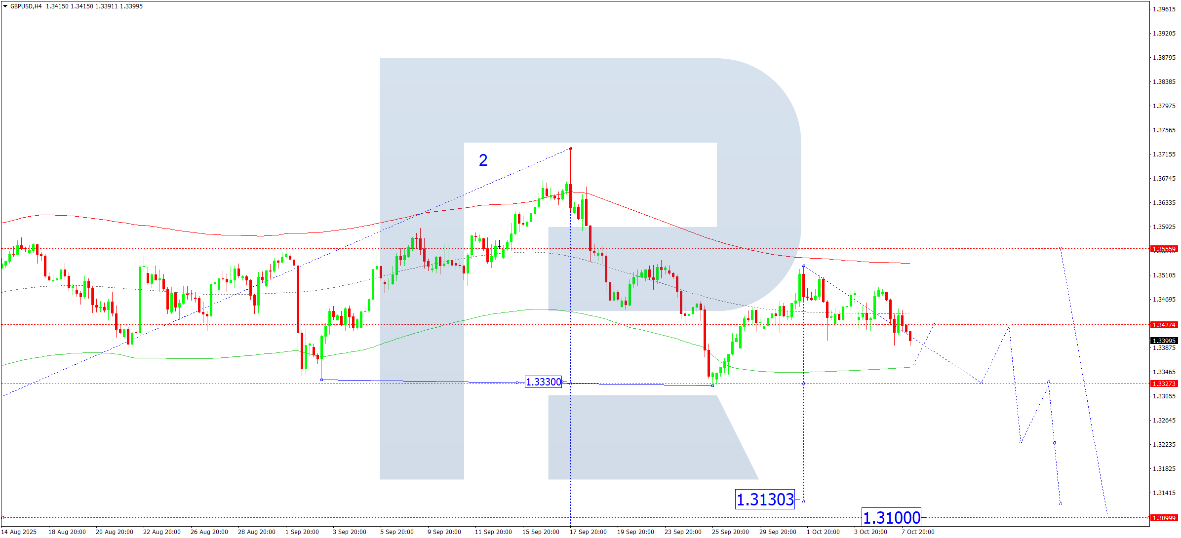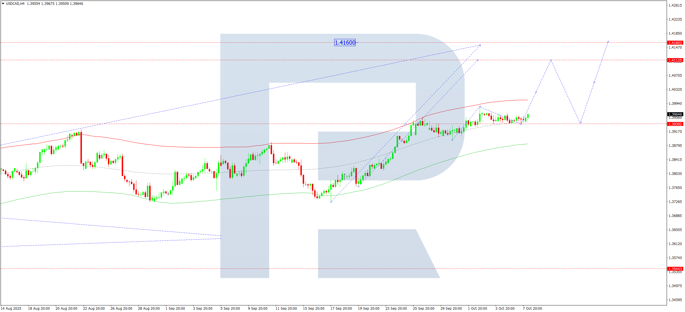 Бұл сценарий Эллиот толқын құрылымы мен 1.3930 деңгейіндегі pivot нүктесі бар өсу толқыны матрицасымен расталады. Нарық Price Envelope жоғарғы шекарасы — 1.4111 бағытына қозғалуда. Осы деңгейге жеткен соң, орталық сызық — 1.3930 деңгейіне дейін түзету болуы мүмкін, кейін өсу 1.4160 деңгейіне дейін жалғасады.