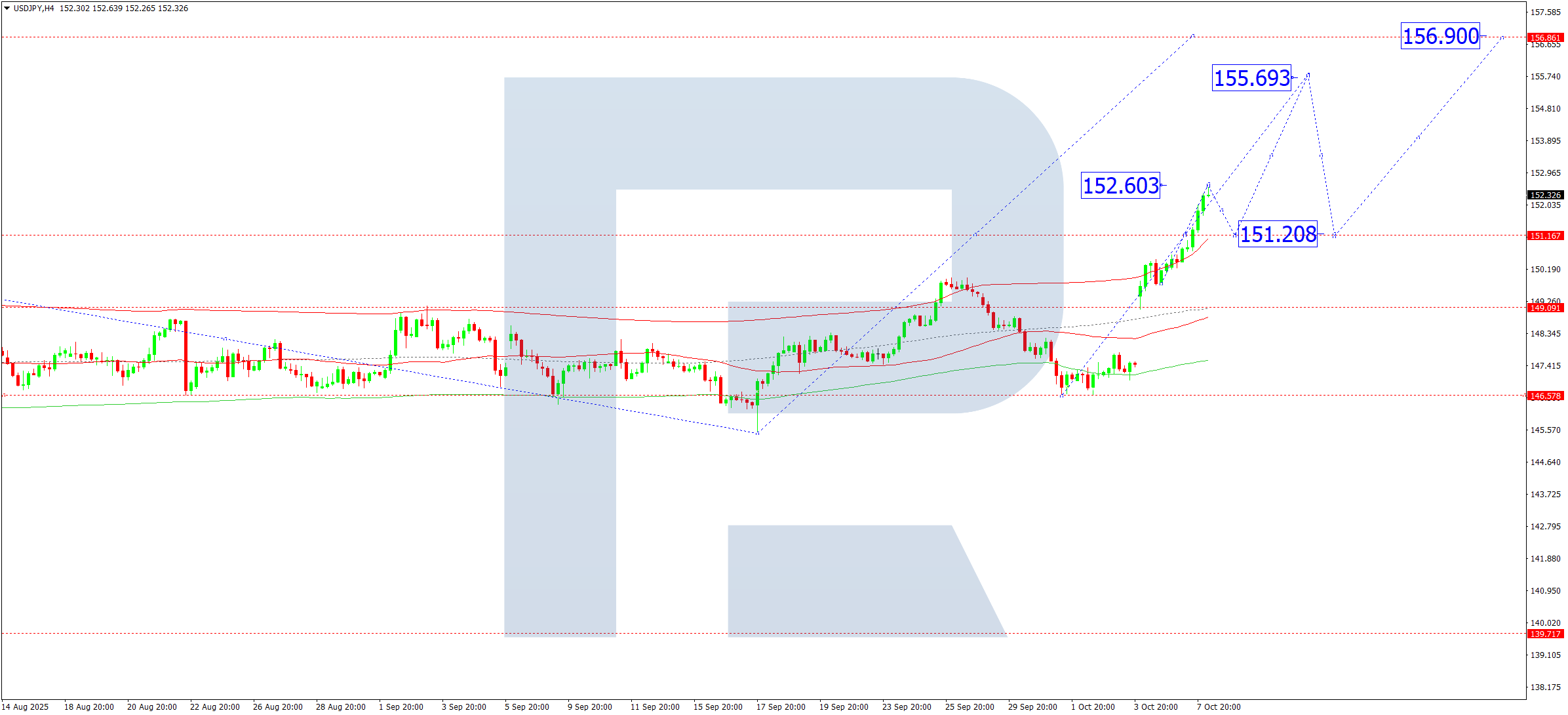Бұл сценарий Эллиот толқын құрылымы мен 147.75 деңгейіндегі pivot нүктесі бар өсу толқыны матрицасымен расталады. Нарық Price Envelope жоғарғы шекарасы — 155.66 деңгейіне қарай қозғалып, 156.90 бағытына өсу мүмкіндігін көрсетеді.