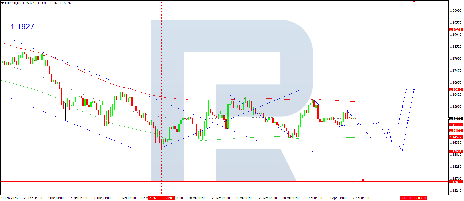 Техникалық тұрғыдан бұл сценарий Elliott Wave құрылымымен және 1.1666 тірек нүктесі бар wave matrix арқылы расталады. Бұл деңгей EURUSD төмендеу толқыны құрылымында негізгі болып саналады. Қазіргі уақытта нарық Price Envelope орталық сызығы 1.1530 маңында консолидация қалыптастыруда. Төменге бұзылу жағдайында баға 1.1455 деңгейіне дейін төмендеуі мүмкін. Ал жоғарыға бұзылу 1.1664 деңгейіне дейін өсуге алып келеді, содан кейін 1.1396 деңгейіне дейін қайта төмендеу ықтимал.