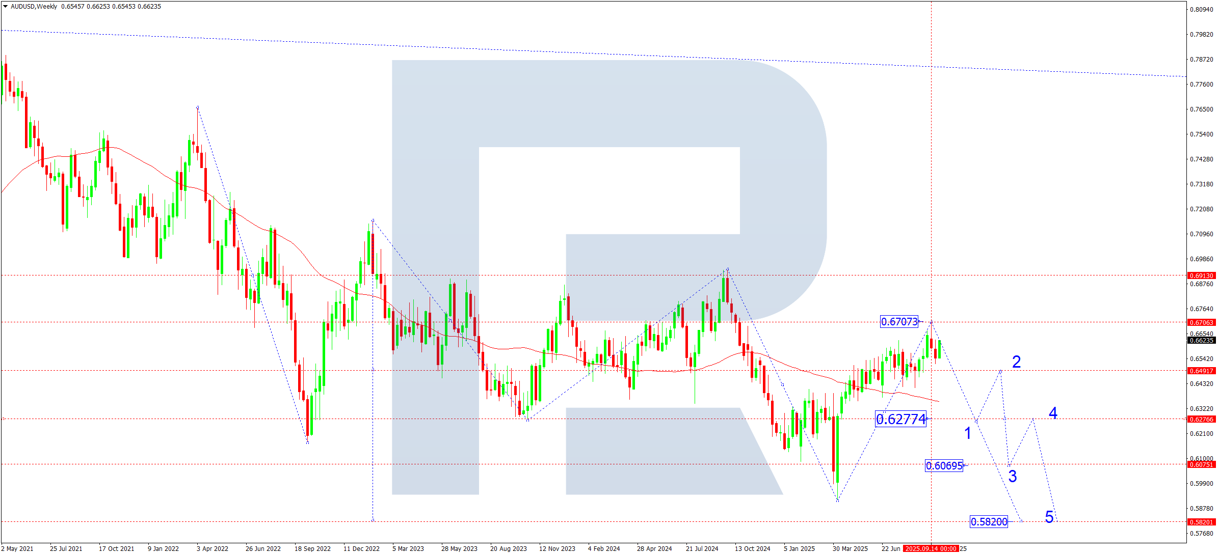 Апталық графикте AUDUSD 0.6520 дейін төмендеуші импульсті аяқтады.