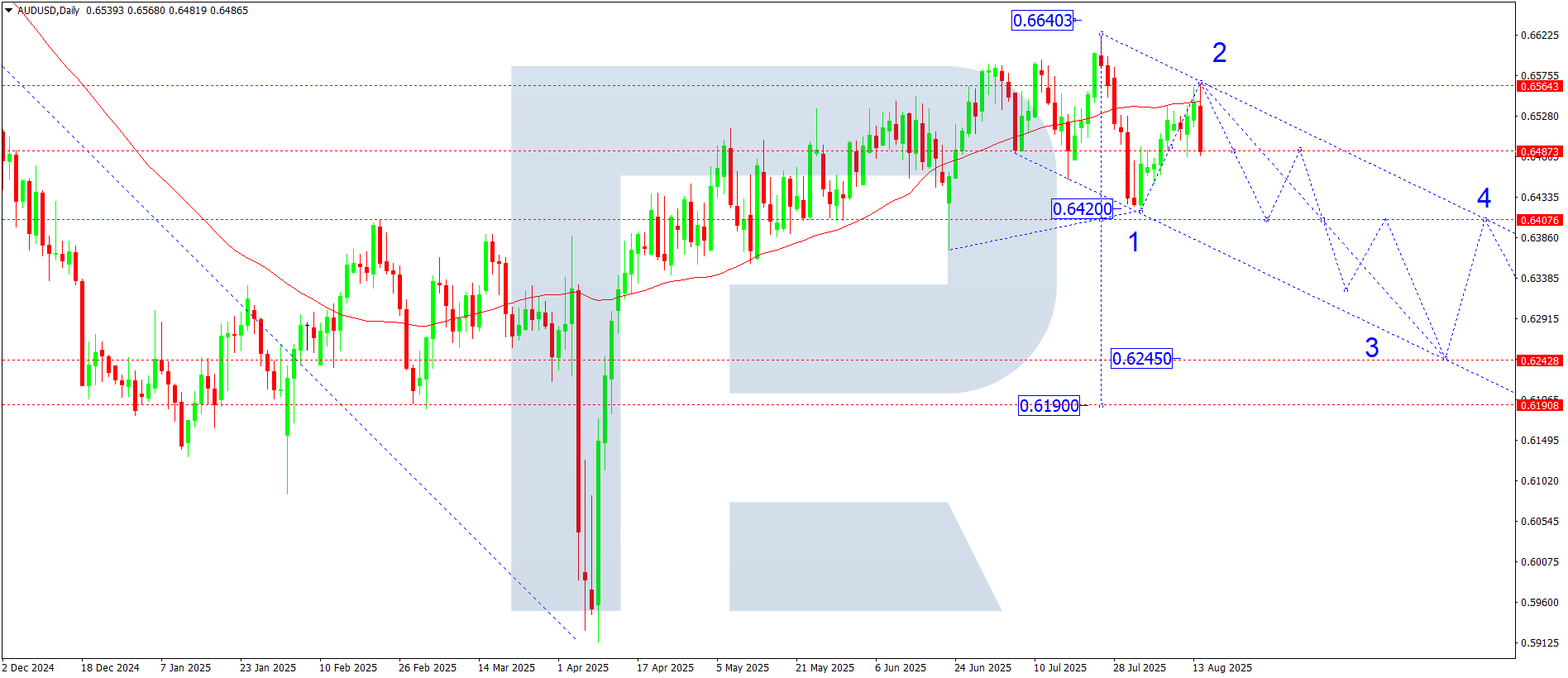 AUDUSD күндік графигінде толқындық құрылым дамуда: