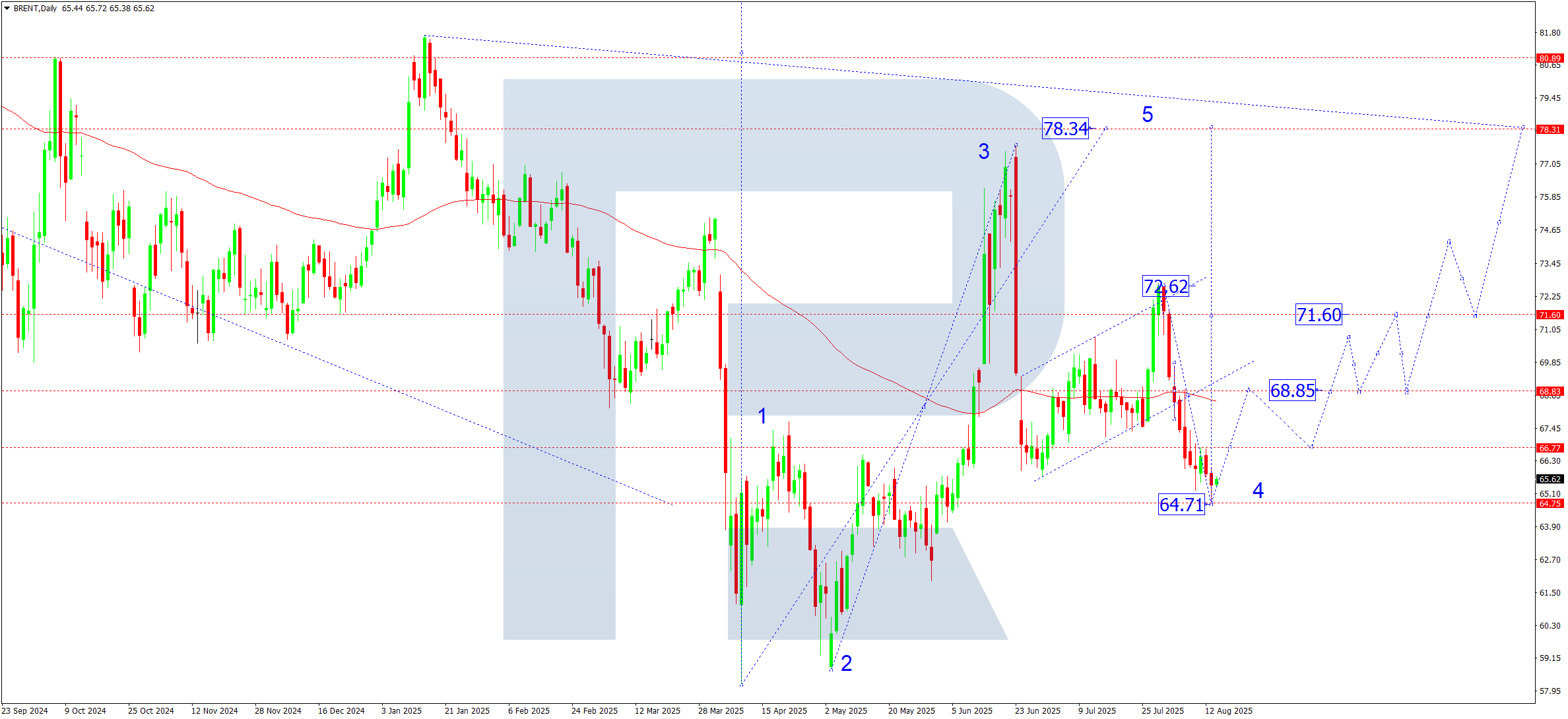 Күндік графикте Brent SMA50 маңындағы 68.50 деңгейінен серпіліп, 64.71-ге дейін төмендеді.