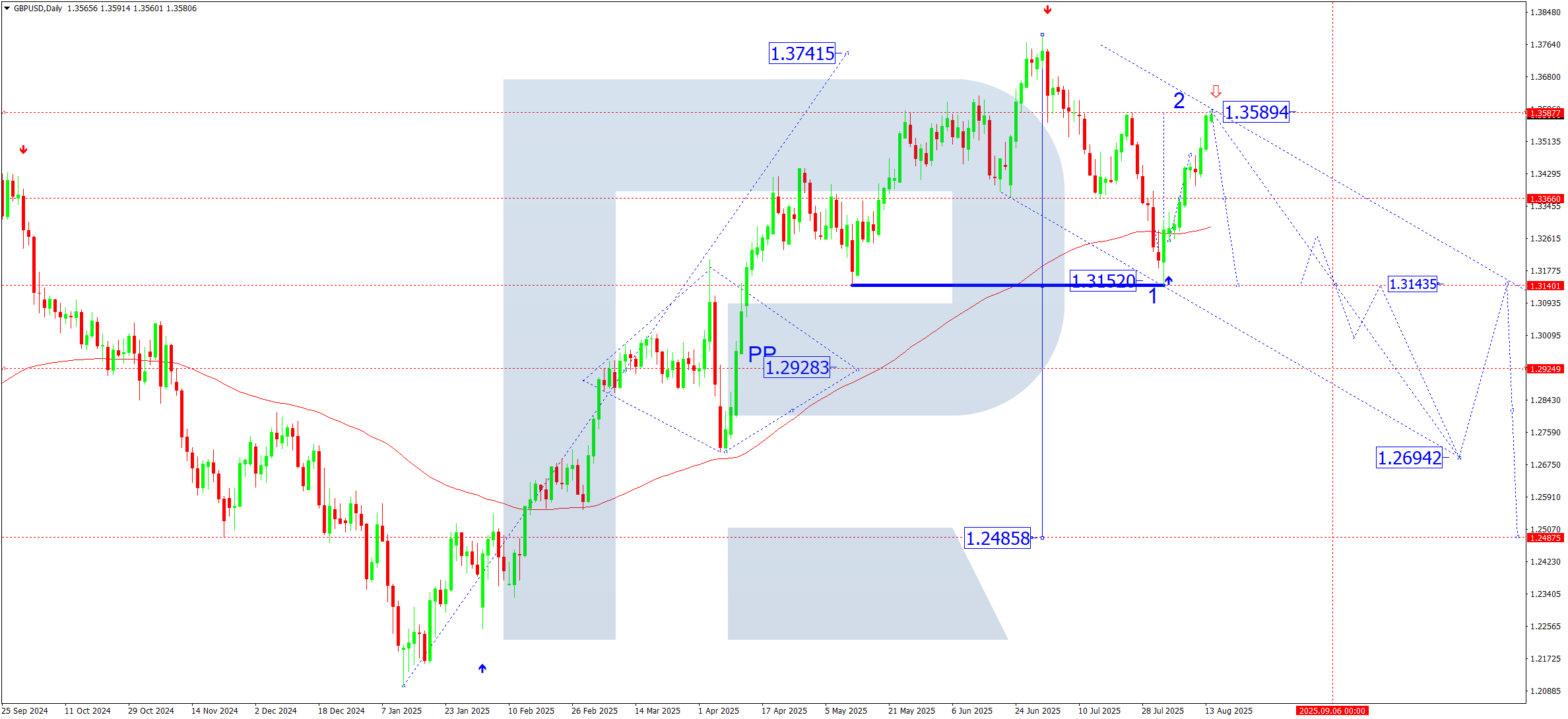Келесі аптада GBPUSD жұбына геосаяси оқиғалар, атап айтқанда, 15 тамызда АҚШ президенті Дональд Трамп пен Ресей президенті Владимир Путиннің Аляска, Анкоридж қаласындағы саммиті айтарлықтай ықпал етеді. Саммит АҚШ-тың Ресейге қысымы күшейген тұста өтті. Трамп Украинамен бітімге 50 күн ішінде (кейін 10–12 күнге қысқартылды) қол жеткізілмесе, Ресей тауарларына 100% тариф және Ресей мұнайын сатып алатын елдерге 500% тариф енгізетінін мәлімдеді. Сондай-ақ Ресей мен Украина арасында аумақтық айырбас ұсыныстары талқылануда, бұл Киев пен одақтастарының алаңдаушылығын тудыруда.
