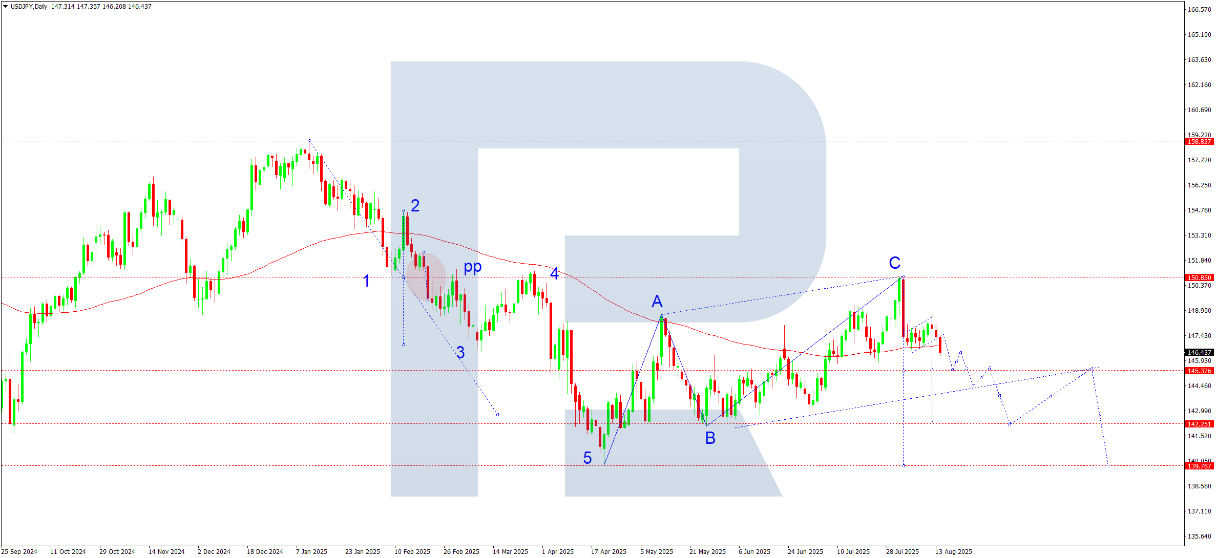 Күндік графикте жұп 148.03 деңгейіне дейін түзетіліп, одан кейін төмендеу импульсін және төмен қарай бұзылған «түзету жалауы» құрылымын қалыптастырды. Ағымдағы жағдай сатушылардың 145.35-ке дейін төмендетуге қызығушылығын көрсетеді.