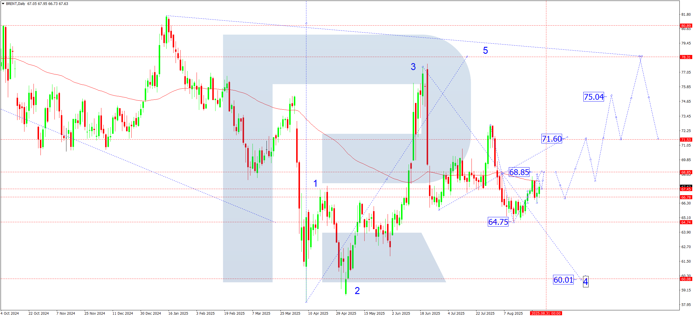 Күндік графикте Brent 66.35 деңгейіне дейін түзетіліп, қолдау тапты, өсім толқынының құрылымын 68.88 бағытында қалыптастырды. Осы деңгейге жеткен соң, 66.66 дейін түзету мүмкін, содан кейін негізгі 71.60 деңгейіне дейін өсу жалғасады. Осы деңгейден кейін төменге қозғалыс 66.60 бағытында дамып, кең консолидация диапазонын құруы ықтимал. Төменге серпіліс 60.00 дейін төмендеуді жалғастыра алады. Бұдан кейін жаңа өсу толқыны күтіледі, мақсат 75.00, тренд әлеуеті 78.30 дейін (алғашқы мақсат). Егер 66.66 қолдау деңгейі сақталса, 71.60 бағытында жаңа өсу құрылымы қалыптасуы мүмкін.