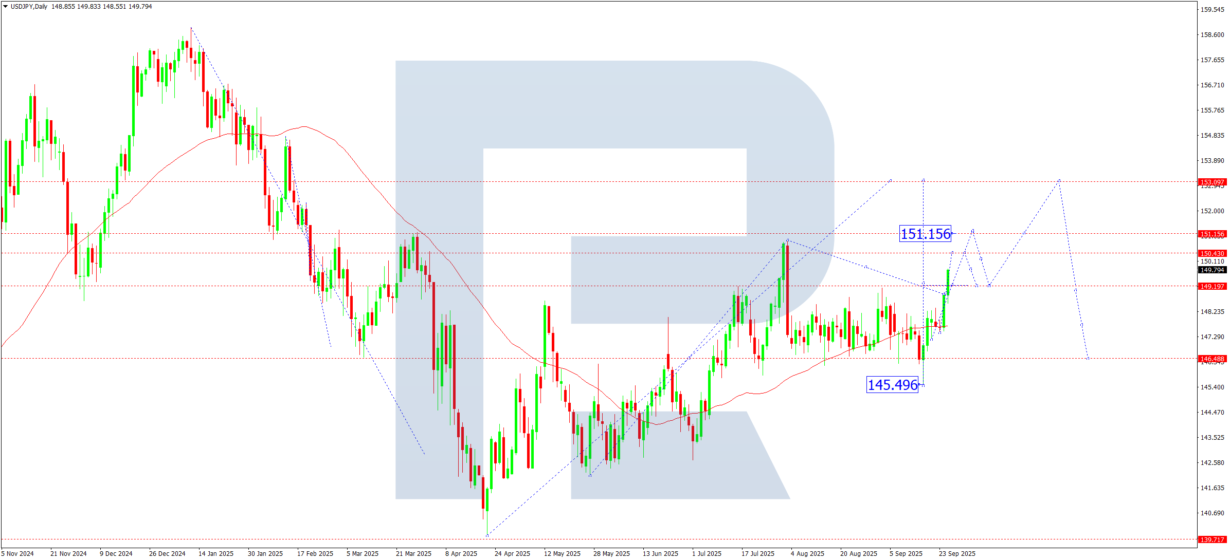 Күндік графикте жұп 149.20 кілт деңгейін жоғары бұзып, өсу толқынын жалғастыруда; келесі жергілікті мақсат — 151.15. Осы деңгейге жеткеннен кейін жұп 149.20 деңгейін жоғарыдан қайта тестілеуге түзетілуі мүмкін. Кеңірек көріністе өсудің қайта жалғасуы және осы толқынның негізгі мақсаты 153.10 бағыты өзекті.