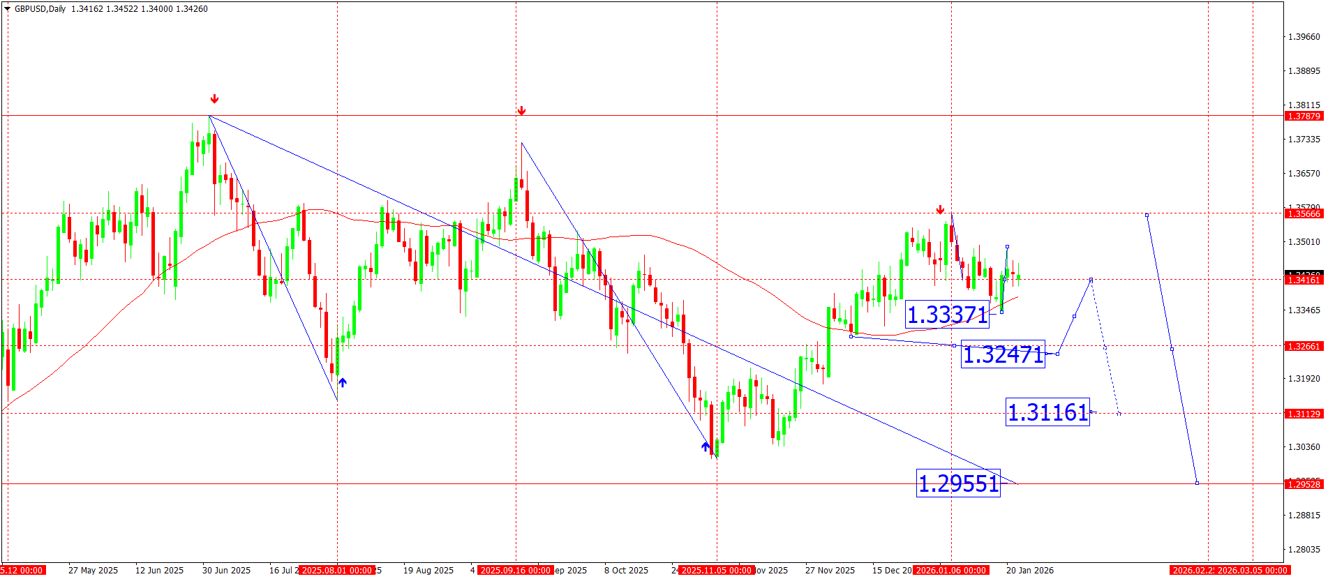 Аюлы сценарий (балама): күрт төмендеу және 1.3450 деңгейінен төмен бұзылу бұқалық сценарийді жоққа шығарып, 1.3400 бағытына төмендеу әлеуетін ашады, ал егер АҚШ доллары күшейсе, тереңірек түзету тәуекелі артады.