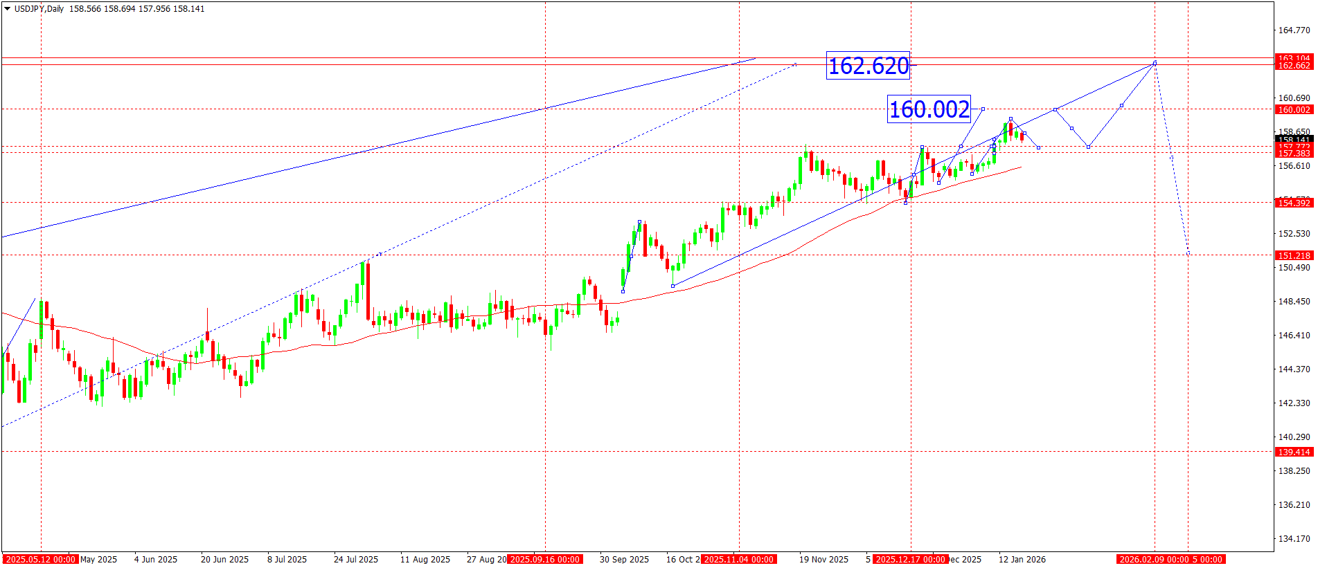 USDJPY-дың күндік графигінде нарық 158.30–158.36 аймағынан қолдау тауып, содан кейін жаңа жоғары толқын қалыптастыруды бастады. Ағымдағы құрылым ең жақын қарсылық деңгейі 159.40 бағытына импульстік қозғалысты меңзейді.