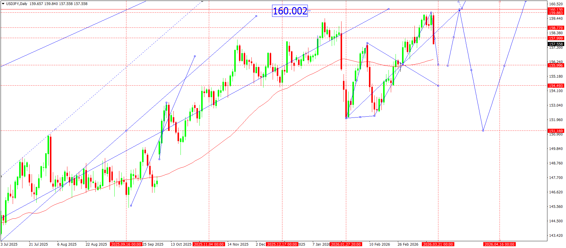 USDJPY валюта жұбы аптаны соңғы айлардағы максимумдарға жақын, 159.00–159.70 аймағында саудаланып аяқтауда. Валюта нарығындағы қозғалыстың негізгі драйвері ретінде геосаяси факторлар, шикізат нарығының динамикасы және әлемнің ірі орталық банктерінің монетарлық саясатына қатысты күтулердің үйлесімі қалып отыр. Иенаға ең күшті әсерді энергия бағасының жоғарылауы мен Таяу Шығыстағы қақтығысқа байланысты жаһандық белгісіздіктің артуы тигізіп отыр. Шиеленістің күшеюі қорғаныс активі ретінде АҚШ долларына сұранысты арттырды, бұл энергия импорттаушы елдердің валюталарына, соның ішінде Жапонияға да қысым түсіруде.