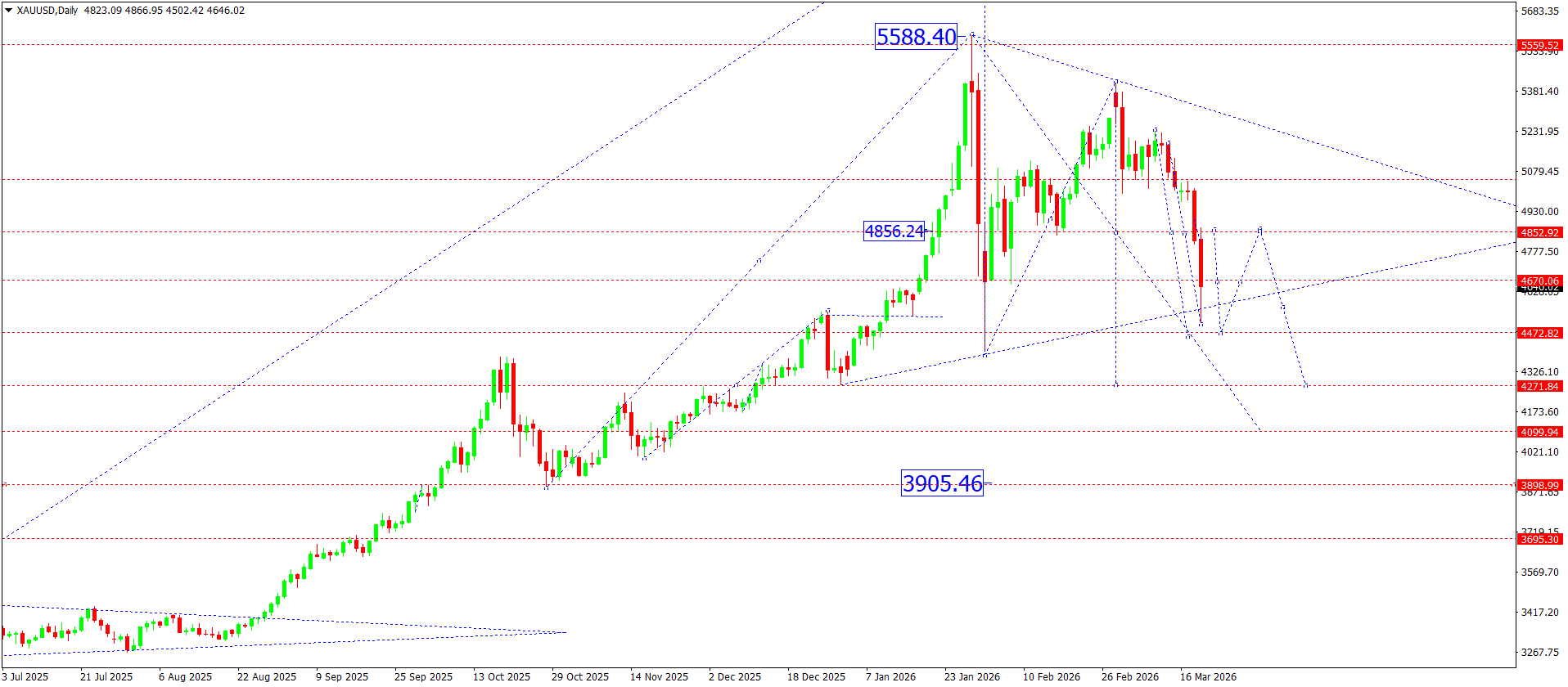 Техникалық тұрғыдан алғанда, күндік XAUUSD графигінде нарық 5,412 деңгейіне дейінгі өсу құрылымын аяқтады, содан кейін түзету фазасы басталды. Түзету мақсаты 4,949 деңгейінде. Іс жүзінде 4,888 маңында консолидация диапазоны байқалады. Түзету аяқталғаннан кейін 5,939 бағытына қарай келесі өсу толқынының басталуын қарастыру орынды болады.