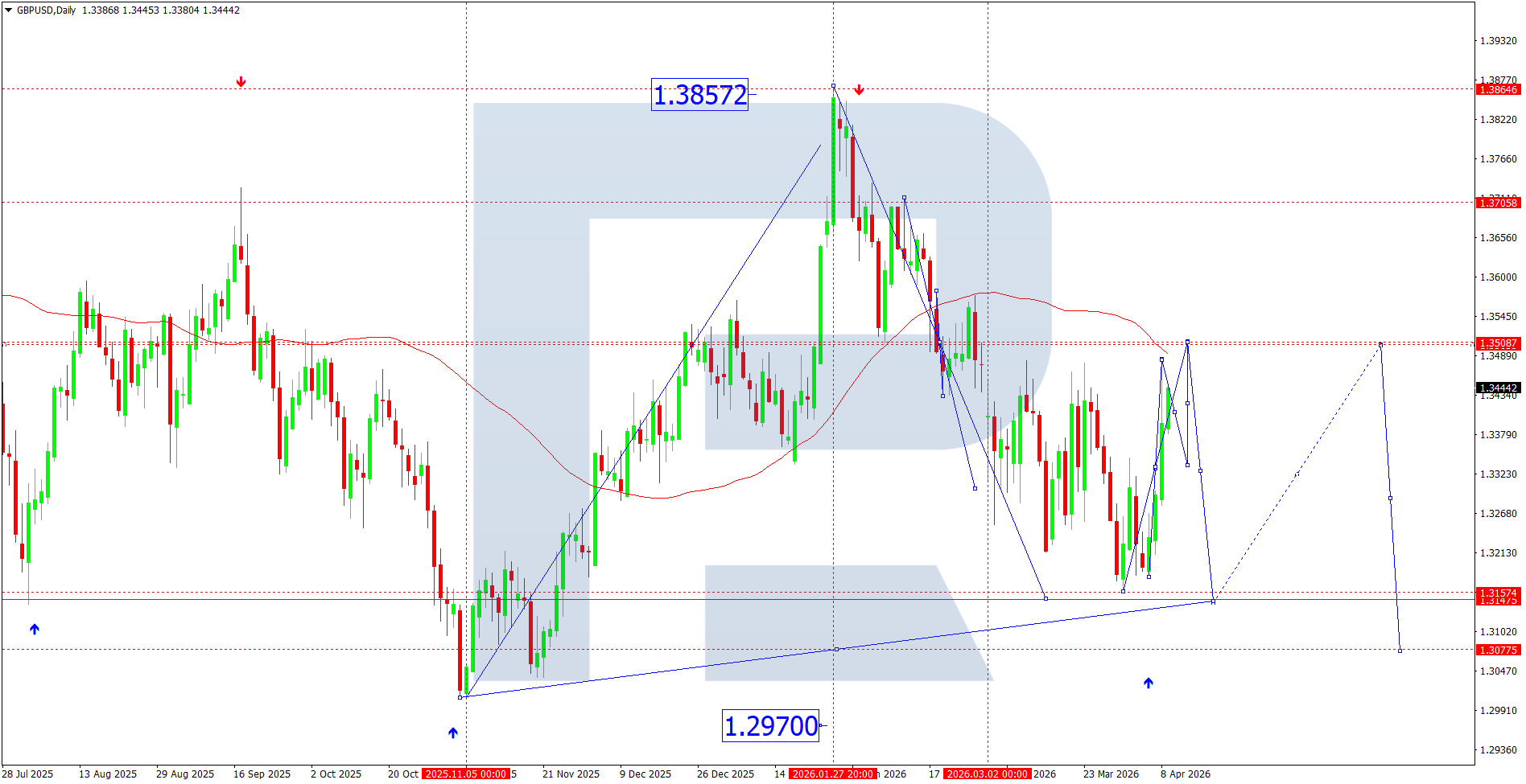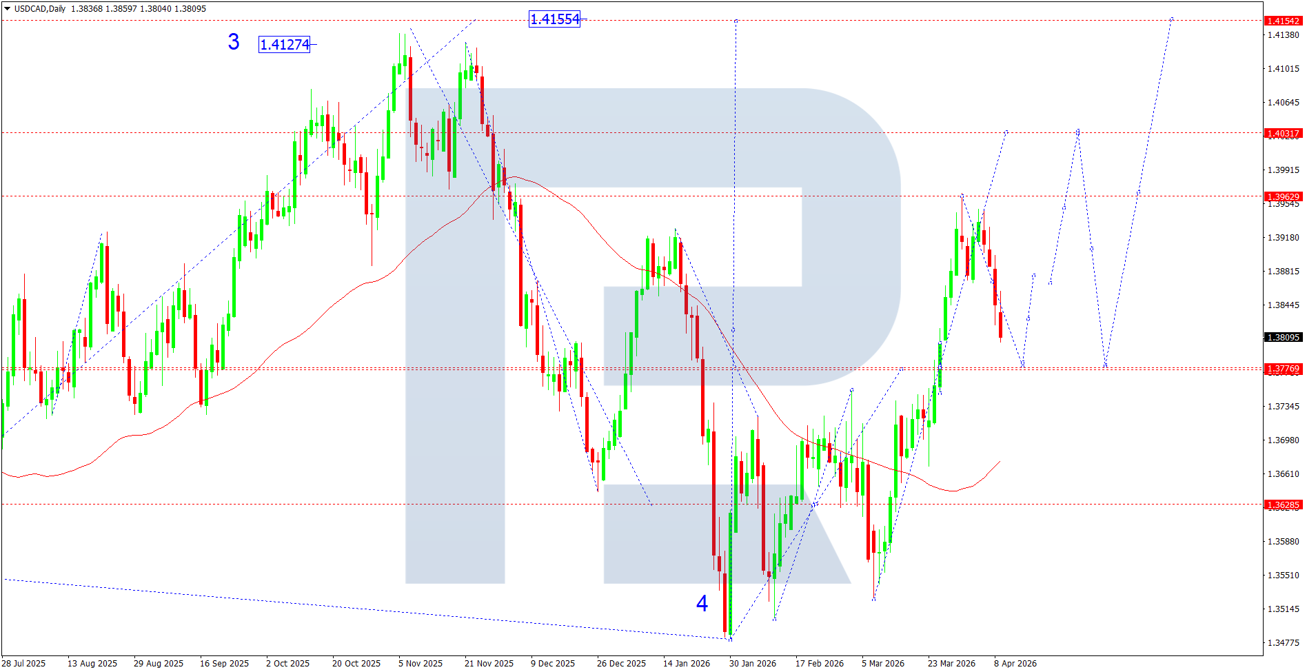 Техникалық тұрғыдан алғанда, күндік график 1.4155 маңындағы максимум қалыптасқаннан кейін орта мерзімді төмендеу трендінің құрылымын көрсетеді. Импульстік төмендеу 1.3477 маңында аяқталды, мұнда 4-толқын қалыптасты, содан кейін қалпына келу басталды. Ағымдағы құрылым жоғары түзетуші фазаның дамуын көрсетеді, дегенмен баға 1.3962–1.4031 қарсылық аймағына жақындап қалды, мұнда өсім баяулауда.