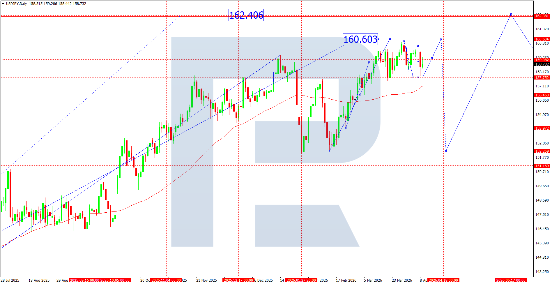 Техникалық тұрғыдан алғанда, күндік график жоғарырақ минимумдардың бірізді қалыптасуымен жалғасып жатқан өсуші құрылымды көрсетеді. Баға жылжымалы орташа мәннен жоғары қалып, сатып алушылардың басымдығын растап отыр. Импульстік өсімнен кейін жұп 157.75–160.60 диапазонында консолидация фазасына өтіп, бүйірлік туды еске түсіретін түзетуші құрылым қалыптастырды. Бұл диапазонды ықтимал тренд жалғасуы алдындағы жинақталу аймағы ретінде түсіндіруге болады.
