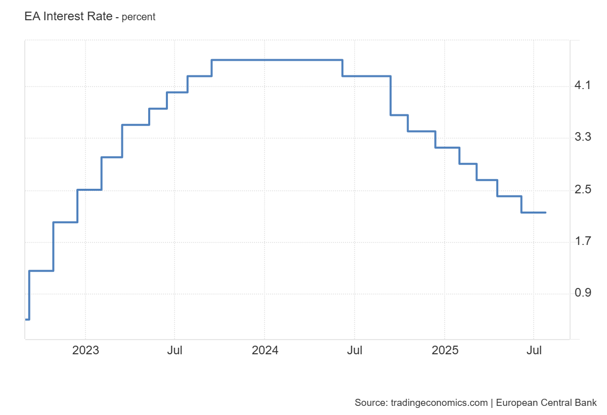 Еуропа Орталық банкі негізгі пайыздық мөлшерлемесін 2.15% деңгейінде қалдырды, бұл күтілген де, бұрынғы көрсеткішпен бірдей. Бұл шешім ЕО-ның қазіргі ақша-несие саясаты инфляцияны тежеуге және экономиканы қолдауға жеткілікті деп бағалайтынын көрсетеді.
