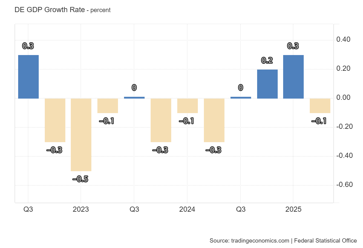 Сонымен қатар, нарық жаңа АҚШ тарифтерінен де қысым көруде. Германия бұл жаңа сауда келісімі аясында ЕО елдері арасында ең көп зардап шегуі мүмкін. ЖІӨ төмендеуі – көбінесе автокөлік сияқты қымбат тұратын ұзақ мерзімді тауарларға тұтынушылық сұраныстың әлсіреуін білдіреді.