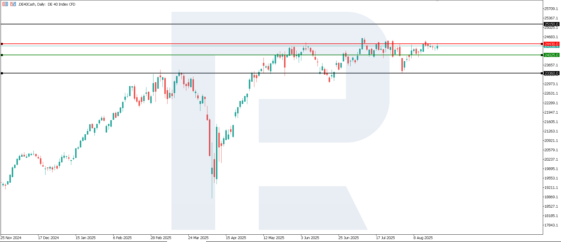CPI деректері Германиядағы баға динамикасының ЕОБ мақсатты деңгейіне жақын тұрақтанғанын растады. DE 40 үшін бұл негізгі сценарийдің сақталуын, реттеушілік белгісіздіктің азаюын және жалпы көріністің бейтарап-оң сипатта болуын білдіреді. Мөлшерлемеге сезімтал секторлар ең көп салыстырмалы қолдау алады. Индекс үшін келесі өсу мақсаты 25,150.0 деңгейі болуы мүмкін.