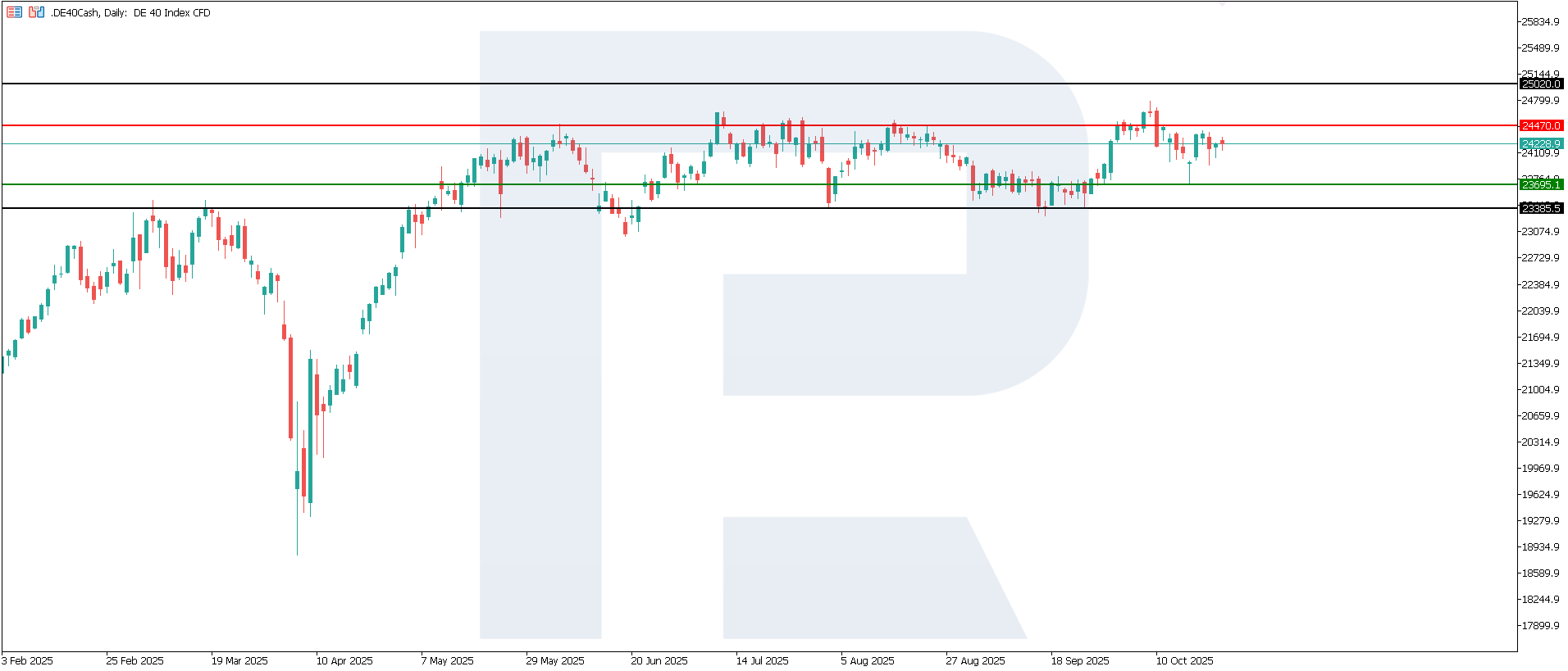 PMI көрсеткішінің 50 деңгейінен төмен болуы қайта бағалау әлеуетін шектейді: нарық, ең алдымен, тиімді жұмыс көрсеткіштері бар, экспортты әртараптандырған және тапсырыс портфелі мықты эмитенттерге назар аударады. Ал ішкі капитал сұранысына тәуелді компаниялар артта қалуы мүмкін. DE 40 индексі үшін келесі төмен бағыттағы мақсат 23,385.0 деңгейінде қалып отыр.