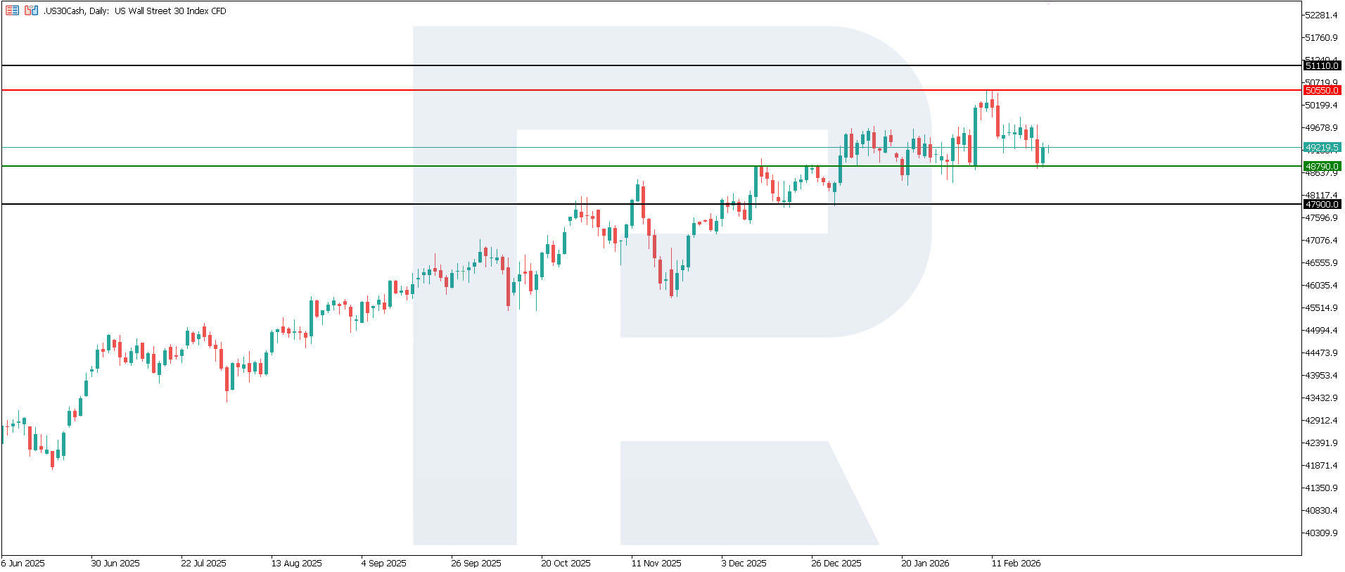 Деректер US 30 үшін орташа қолайсыз болып табылады, алайда PMI кеңею аймағында қалғандықтан ауқымды құлдырауды білдірмейді. Ең ықтимал нарықтық реакция — бағаның шектеулі қозғалысы және алдағы сұраныс, инфляция және еңбек нарығы деректеріне назардың артуы. Ең жақын төмендеу мақсаты — 47,900.0 деңгейі.