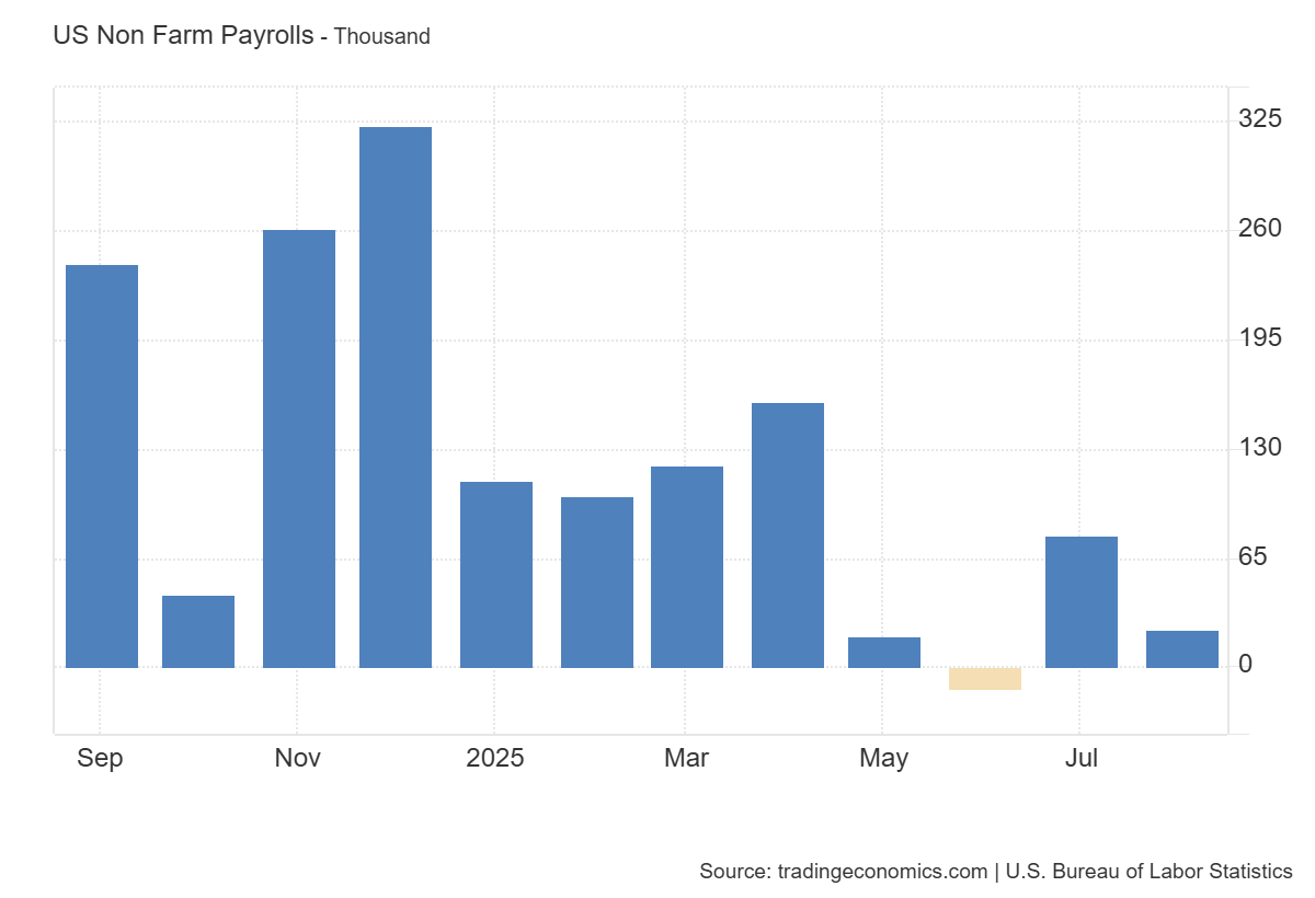 АҚШ-тың 2025 жылғы тамыздағы Nonfarm Payrolls деректері 22 мың жаңа жұмыс орнын көрсетті, бұл 75 мыңдық болжамнан әлдеқайда төмен және алдыңғы 79 мыңнан айтарлықтай әлсіз. Бұл нәтиже еңбек нарығы динамикасының баяулағанын көрсетеді және АҚШ қор нарығы үшін бірнеше салдары бар.