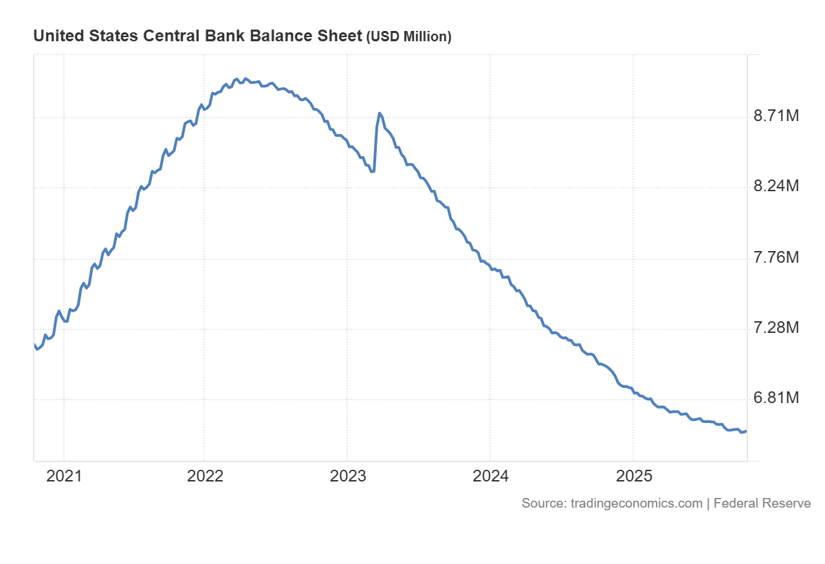 Үкіметтің жабылуының (shutdown) мүмкін аяқталуы туралы жаңалықтар саяси белгісіздікті азайтып, қысқа мерзімде тәуекел тәбетін қолдайды. Макродеректердің жариялануының қайта басталуы және бюджеттік процестің айқындалуы белгісіздік сыйақысын төмендетіп, циклдік секторларға қысқа мерзімді серпін беруі мүмкін. Алайда, shutdown аяқталғаннан кейін де, мемлекеттік қарыздың жоғары деңгейі қазынашылық кірістіліктерін қолдауды жалғастырады. Баланс азайту бағдарламасымен қатар, бұл акциялар нарығының қайта бағалануының әлеуетін шектейді және нарықты аукциондар мен инфляция деректеріне сезімтал күйде қалдырады.