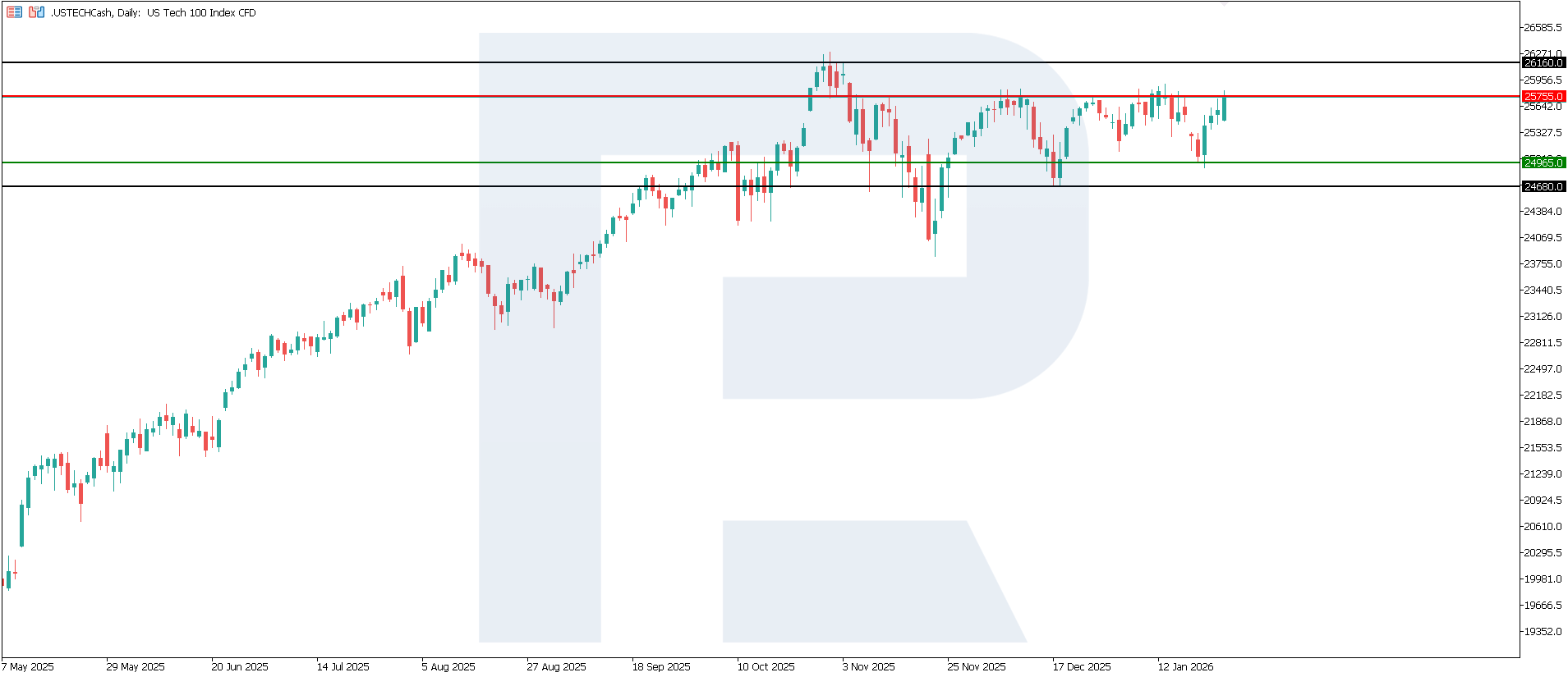 Қызмет көрсету секторының PMI индексі АҚШ экономикасында орташа өсімнің сақталып отырғанын көрсетеді, алайда жақсару байқалмайды және көрсеткіш күтулерден сәл төмен болды. US 500 үшін бұл қысқа мерзімде бейтарап, аздап теріс реңкі бар сигнал болып саналады, ал түпкілікті әсер облигациялар нарығының реакциясына және Федералдық резерв жүйесінің пайыздық мөлшерлемелер траекториясына қатысты күтулердің қайта қаралуына байланысты болады. Болжамнан ауытқу өте шамалы болғандықтан, нарықтың шектеулі реакциясы ықтимал. Техникалық тұрғыдан алғанда, US 500 индексі 7,085.0 деңгейіне дейін көтерілуі мүмкін.