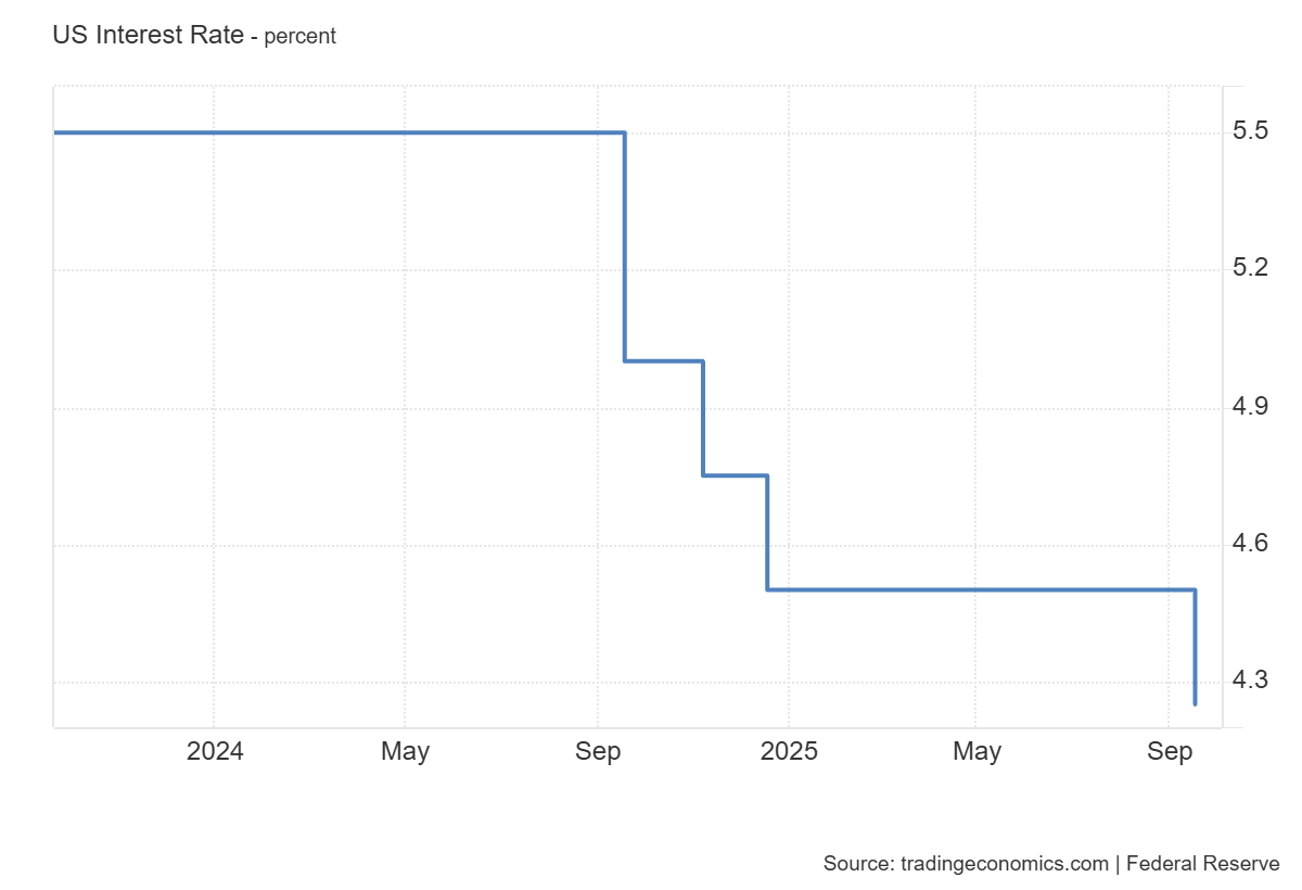 Федералдық резервтің негізгі мөлшерлемені 4.50%-дан 4.25%-ға дейін төмендету туралы шешімі АҚШ қаржы нарықтарына маңызды сигнал берді. Бұл қысқарту ФРЖ-ның ЖІӨ өсімінің баяулауы мен еңбек нарығының әлсіреуі жағдайында экономикалық белсенділікті қолдау ниетін көрсетеді. Төмен мөлшерлемелер корпорациялар мен үй шаруашылықтары үшін қарыз алу құнын азайтады, бұл инвестициялар мен тұтынуды ынталандыруы мүмкін. Алайда, Джером Пауэллдің ілеспе түсініктемелері тариф саясатының ішінара әсерінен туындайтын инфляциялық тәуекелдердің сақталып отырғанын көрсетті, бұл инвесторлардың шамадан тыс оптимизмін тежейді.