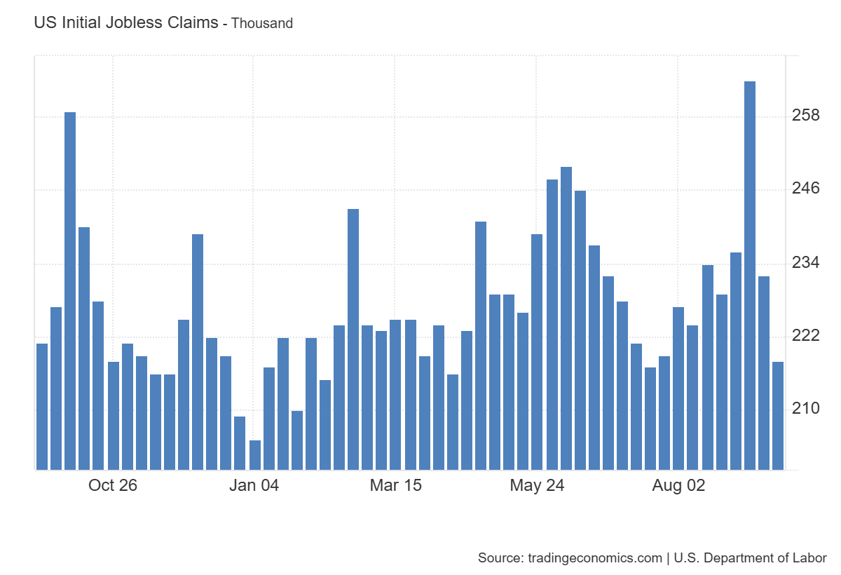 АҚШ-тағы бастапқы жұмыссыздық өтінімдері 218 мыңға дейін төмендеді, бұл күтілген 233 мыңнан жақсы және алдыңғы 232 мыңнан айтарлықтай төмен. Мұндай динамика еңбек нарығының тұрақтылығын көрсетіп, ғаламдық белсенділік бәсеңдеген жағдайда да экономиканың жұмыс орындарын құруды жалғастырып жатқанын дәлелдейді. Инвесторлар үшін бұл – корпоративтік табыстардың іргетасы берік деген белгі, өйткені үй шаруашылықтарының сұранысы жұмыспен қамтудың арқасында қолдау табуда.