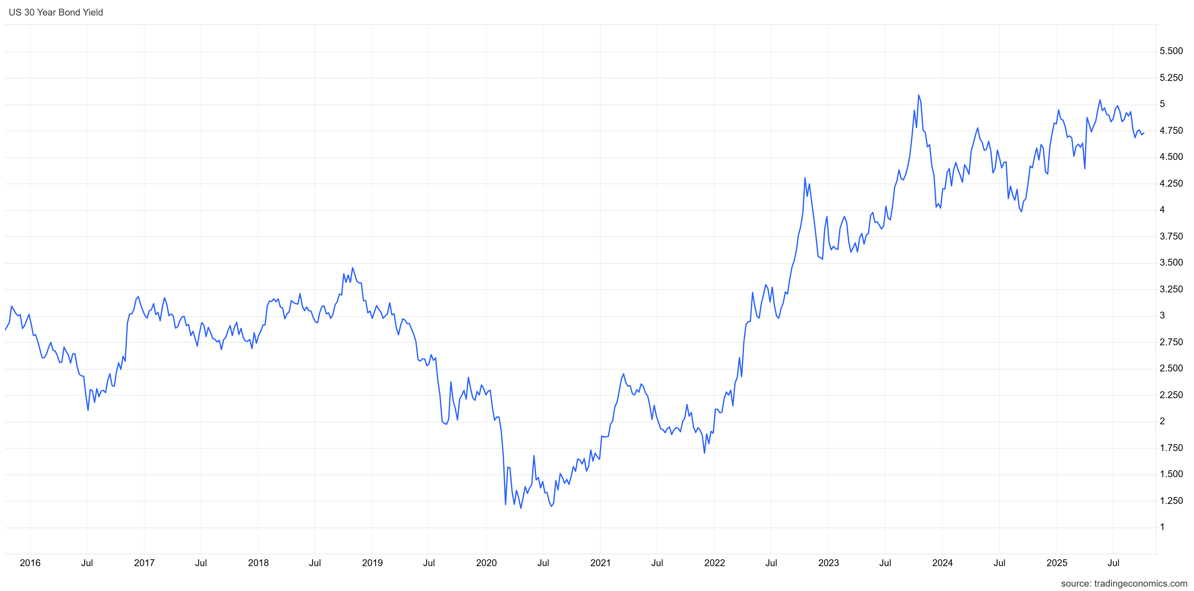АҚШ-тың 30 жылдық қазынашылық облигацияларының кірістілігі алдыңғы аукциондағы 4.651%-дан 4.734%-ға өсті. Бұл инвесторлардың ұзақ мерзімді бағалы қағаздарды ұстағаны үшін жоғары өтемақы талап ететінін білдіреді, яғни олар пайыздық мөлшерлемелердің ұзақ уақыт жоғары деңгейде қалуы немесе инфляциялық тәуекелдердің артуы мүмкін деп күтеді. Ұзақ мерзімді кірістіліктің өсуі әдетте қаржылық жағдайлардың қатаю белгісі болып саналады.
