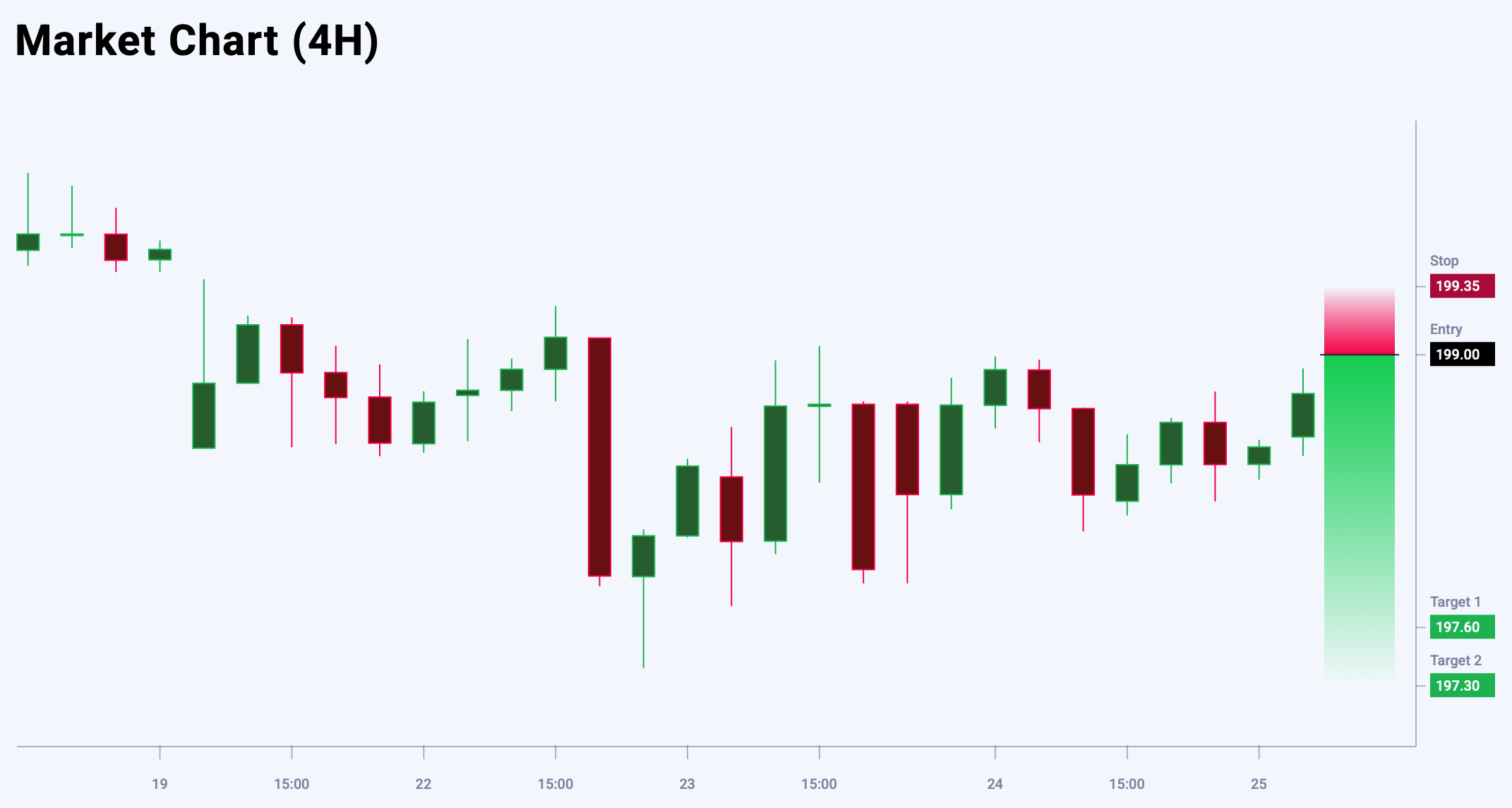 2025 жылғы 25 шілде арналған XAUUSD сауда идеясыGBPJPY котировкалары құбылмалы және аралас сипатта саудалануда. Валюталық жұп 199.55 деңгейіндегі қарсылық пен 197.95 деңгейіндегі қолдау арасында қалып отыр. Бүгінгі өсу қозғалысы алдыңғы күнгі максимуммен шектелуі мүмкін. Уақытша ралли ықтималды болғанымен, ұсынылатын стратегия – баға өскен кезде сату. Негізгі қарсылық деңгейі – 199.00. Бүгінгі GBPJPY сауда идеясы күтілетін Sell Limit ордерін орналастыруды ұсынады.