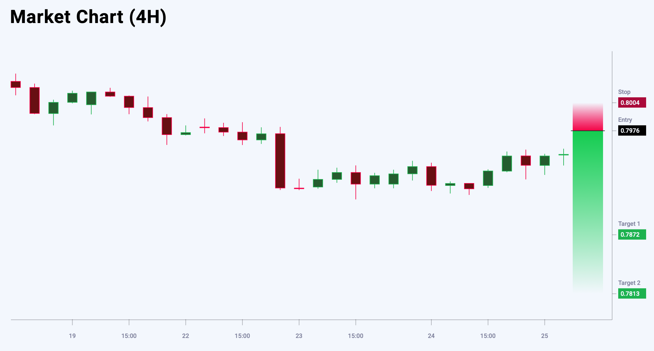 2025 жылғы 25 шілде арналған GBPJPY сауда идеясыUSDCHF жұбы 0.7911 деңгейінен үшінші сессия қатарынан қалпына келуде. Алайда, жалпы баға құрылымы төменгі максимумдар мен минимумдарды көрсетіп отыр, бұл нарықта аюлы көңіл-күйдің басым екенін білдіреді. Баға көтерілгенде сату – ұсынылатын тәсіл. Негізгі қарсылық деңгейі – 0.7976. Бүгінгі USDCHF сауда идеясы күтілетін Sell Limit ордерін орналастыруды ұсынады.