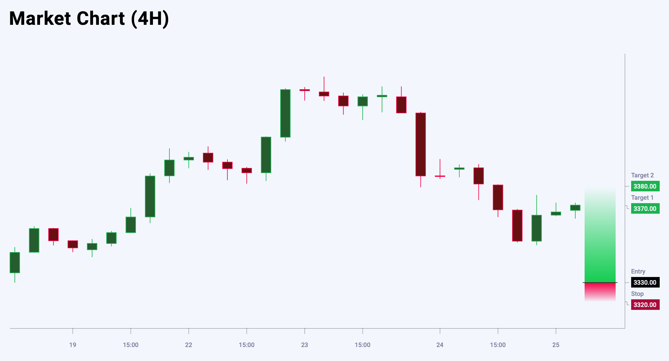 XAUUSD соңғы үш күн қатарынан төмендегеніне қарамастан, негізгі тренд жоғары бағытта сақталып отыр. Ағымдағы түзету жалғасуы мүмкін, бірақ «түзетулер кезінде сатып алу» стратегиясы өзекті болып қала береді. Ағымдағы деңгейден ұзын позиция ашу тиімсіз тәуекел мен табыс арақатынасына ие. Негізгі қолдау деңгейі – 3 330.00. Бүгінгі XAUUSD сауда идеясы күтілетін Buy Limit ордерін орналастыруды ұсынады.