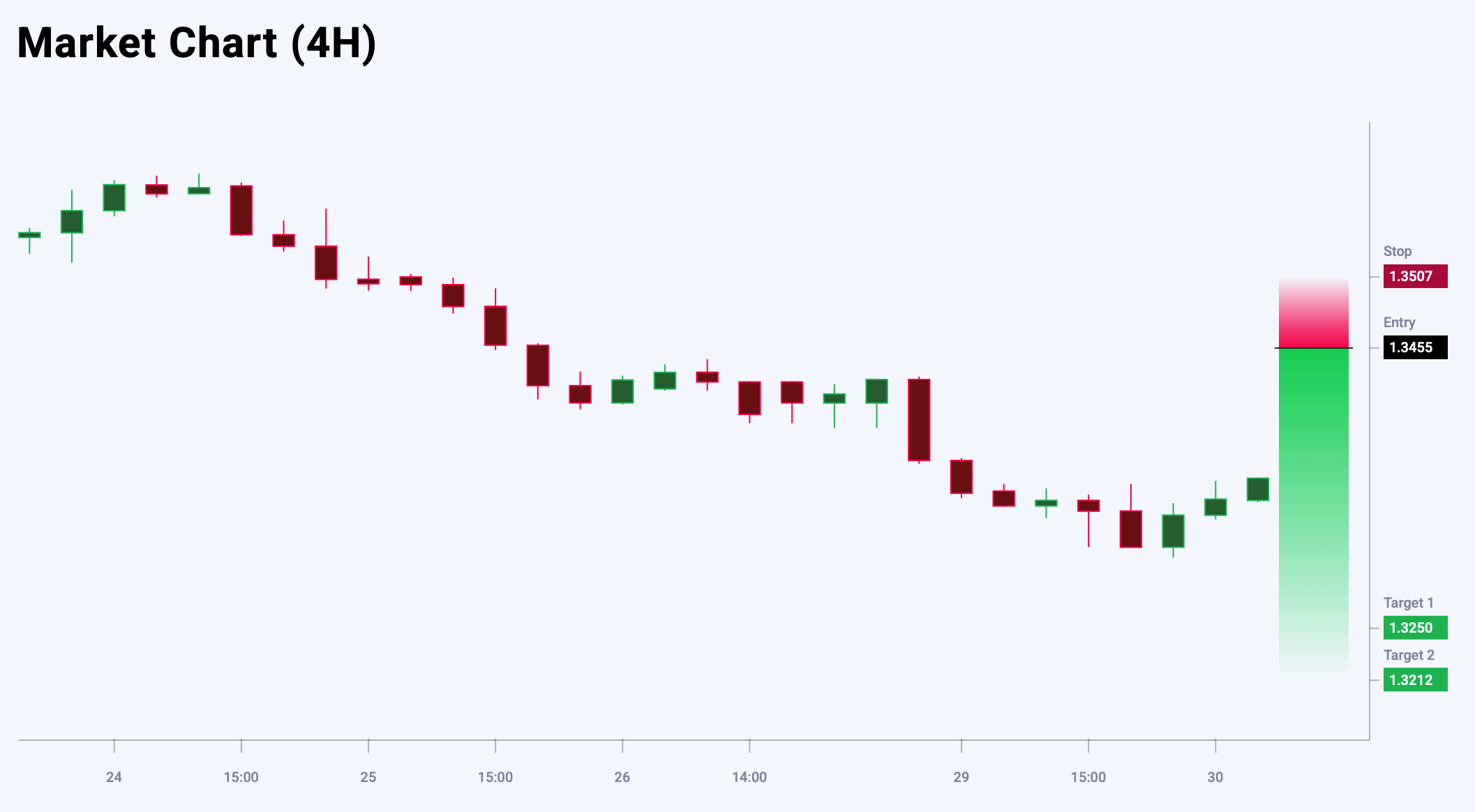 2025 жылғы 30 шілде арналған XAUUSD сауда идеясыGBPUSD котировкалары қатарынан төрт сессиядағы төмендеуден кейін сәл қалпына келуде. 1.3365 деңгейіндегі қолдау бұзылды, ал баға төмендеу арнасында қозғалысын жалғастыруда. Трендтік сызық бойынша қолдау – 1.3250 деңгейінде орналасқан. Ұсынылатын стратегия – баға көтерілгенде сату. Бүгінгі GBPUSD сауда идеясы күтілетін Sell Limit ордерін орналастыруды ұсынады.