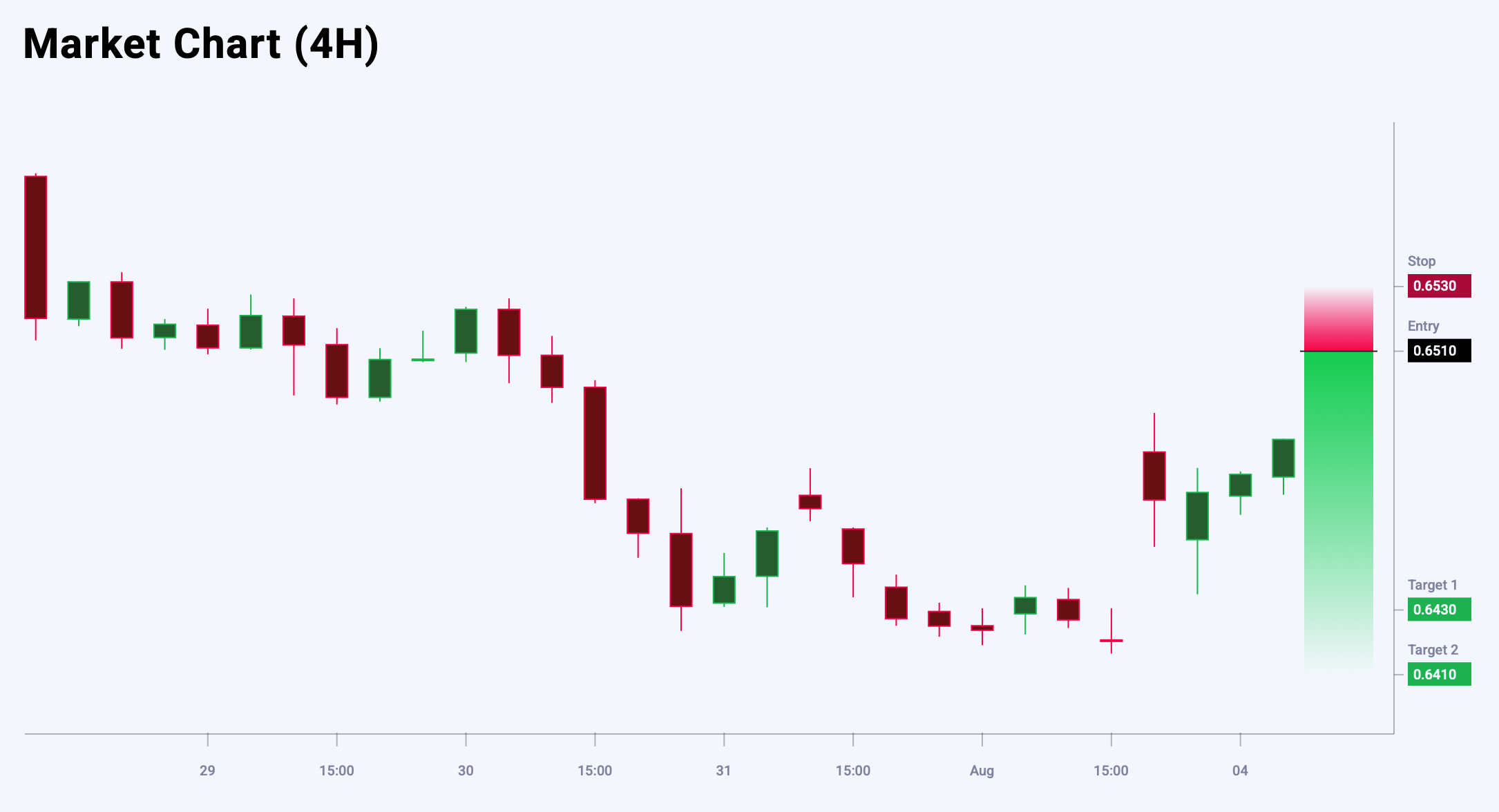 AUDUSD валюта жұбының қозғалысы құбылмалы және аралас күйде қалуда, алайда орта мерзімді тренд аюлы болып отыр. Қысқа мерзімді қалпына келу күтіледі, ал bullish divergence бұл қозғалысты қолдауы мүмкін. Жақын қарсылық деңгейі 0.6510 маңында орналасқан – осы жерден қайтадан төмендеу басталуы мүмкін. Бүгінгі AUDUSD сауда идеясы күтілетін Sell Limit ордерін орналастыруды ұсынады.