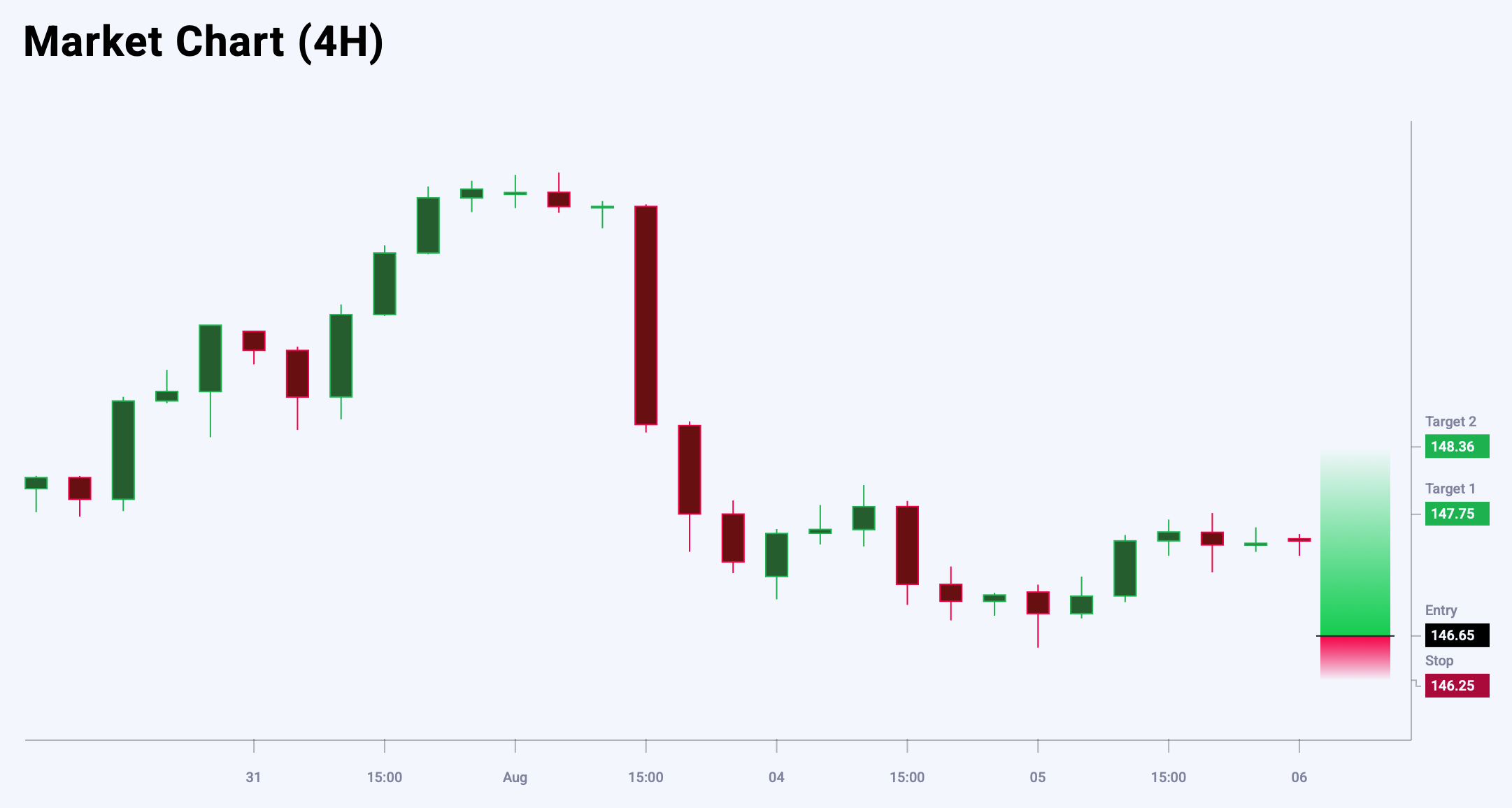 USDJPY валюта жұбы күрт төмендеуден кейін қалпына келуге тырысуда. Баға ішкі күндік минимумдардан түзетілді, бұл Еуропа сессиясы басында өсу импульсінің сақталып отырғанын көрсетеді. Ішкі күндік сауда 146.60 қолдау және 147.75 қарсылық деңгейлері арасындағы диапазонда өтуде. Жұп артық сатылған аймақта, бұл одан әрі өсу ықтималдығын арттырады. Негізгі сценарий – баға төмендегенде сатып алу. Бүгінгі USDJPY сауда идеясы күтілетін Buy Limit ордерін орналастыруды ұсынады.