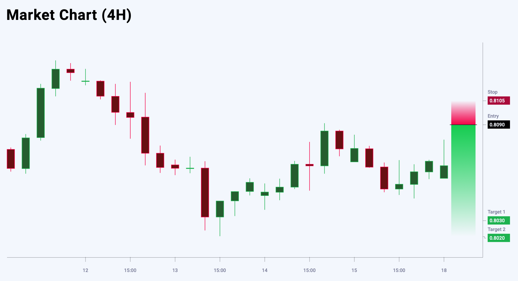 USDCHF үшін негізгі тренд аюлы болып қалып отыр, алайда қазіргі деңгейлерден қысқа позициялар ашу тәуекел/пайда арақатынасының қолайсыздығы мен 0.8035 деңгейіндегі күшті қолдау аймағына жақын болуына байланысты қауіпті. Уақытша жоғары түзету күтілуде, сондықтан сатуды өсімдерден жүзеге асыру ұсынылады. Негізгі қарсылық деңгейі — 0.8090. Бүгінгі USDCHF сауда идеясы күтілетін Sell Limit бұйрығын қоюды ұсынады.