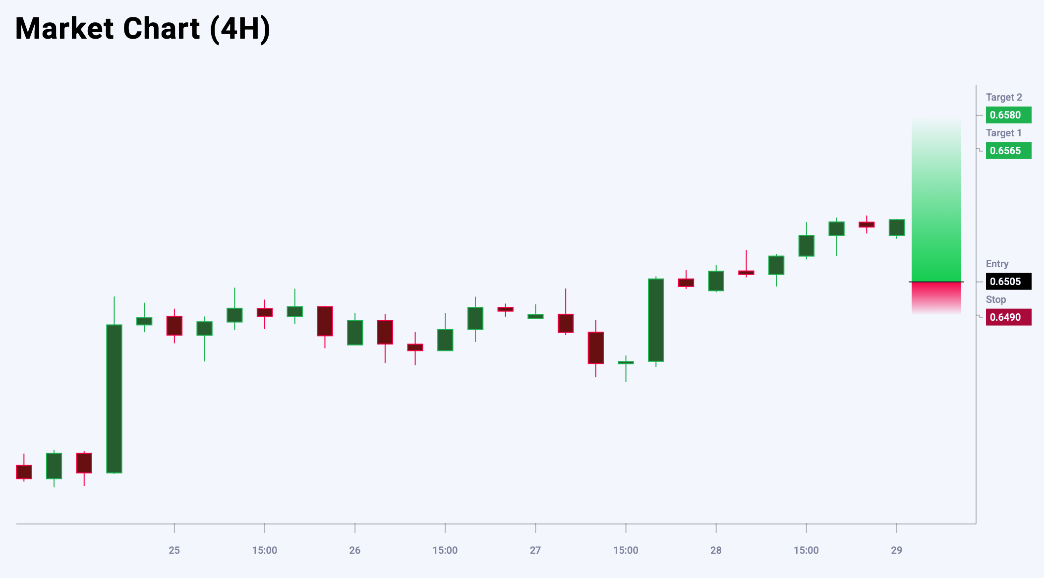 AUDUSD бойынша нарықтық көңіл-күй бұқалық бағытта — 56% қарсы 44%. Тәуекел/пайда арақатынасы 1:5 деңгейінде. Бірінші тейк-профитте әлеуетті пайда — 60 пункт, екіншіде — 75 пункт, ықтимал шығындар 15 пунктпен шектелген.