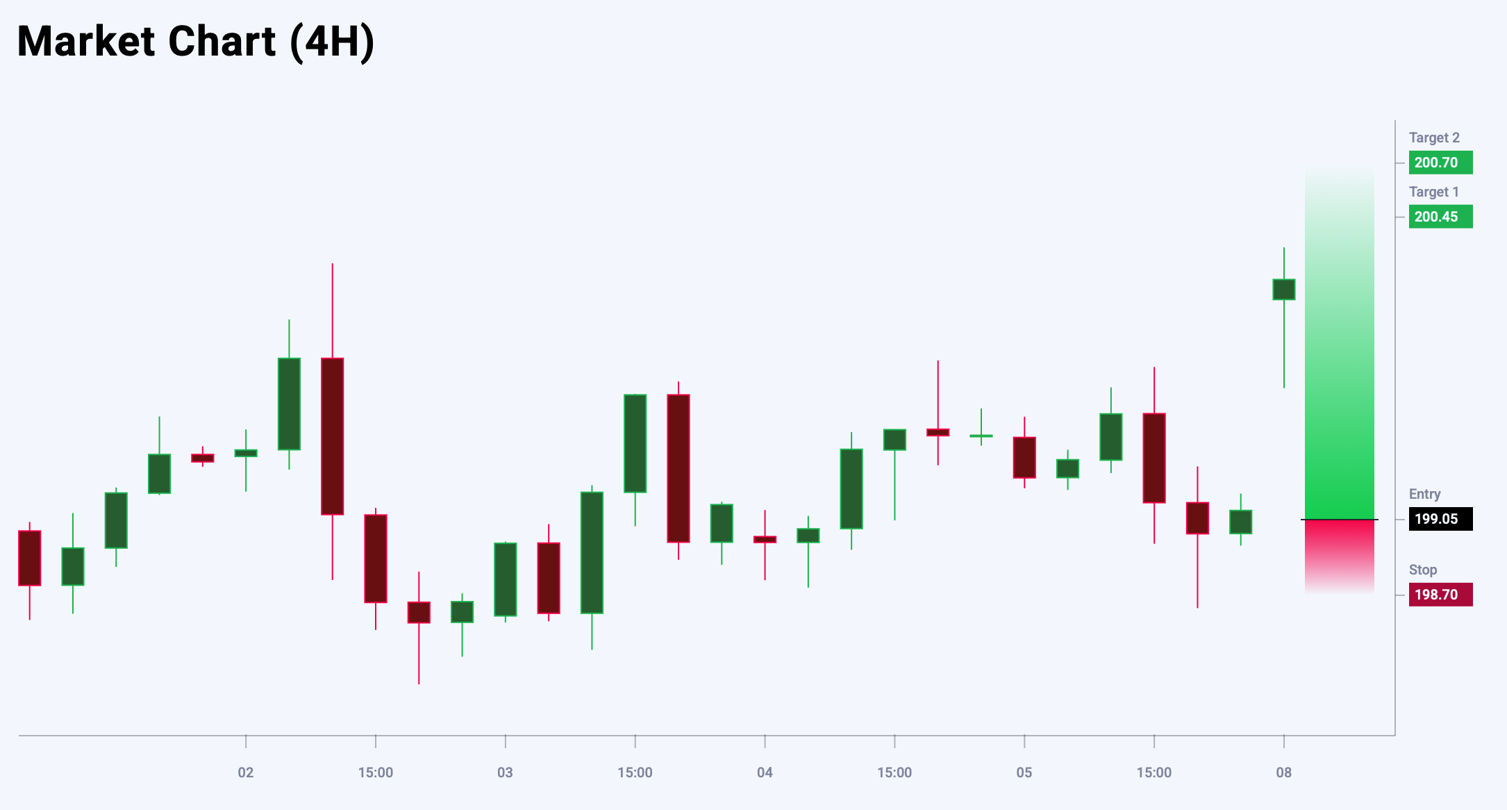 GBPJPY жұбы бойынша негізгі тренд бұқалық күйде қалуда, алайда жұп артық сатып алынған аймаққа жақын саудалануда, бұл уақытша түзетуді меңзейді. Ең жақын қолдау деңгейі 199.05 белгісінде орналасқан, сондықтан төмендеулерден сатып алу стратегиялары басым. Бүгінгі GBPJPY сауда идеясы күтілетін Buy Limit бұйрығын қоюды ұсынады.